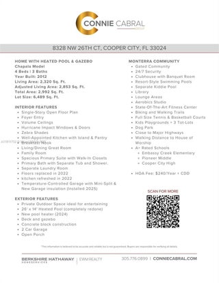 MOTIVATED SELLER! ENTERTAINING OFFERS! THOUGHTFULLY DESIGNED 4-BED, 3-BATH RESIDENCE WITHIN THE EXCLUSIVE GATED COMMUNITY OF MONTERRA IN COOPER CITY. WITH OVER 2,300 SQ. FT. OF LIVING SPACE, THE HOME FEATURES AN OPEN FLOOR PLAN WITH VOLUME CEILINGS, A WELL-APPOINTED KITCHEN THAT FLOWS INTO A COMFORTABLE FAMILY ROOM, WHILE THE SPACIOUS PRIMARY SUITE OFFERS GENEROUS WALK-IN CLOSETS AND A LUXURIOUS BATH COMPLETE WITH A ROMAN TUB, DUAL SINKS, AND A SEPARATE SHOWER. THE PRIVATE OUTDOOR SPACE IS IDEAL FOR ENTERTAINING, FEATURING A POOL AND INVITING GAZEBO. RESORT-STYLE AMENITIES INCLUDE CLUBHOUSE, FITNESS CENTER, BASKETBALL & TENNIS COURTS, TOT LOT, DOG PARK, AND WALKING TRAILS. A+ RATED SCHOOLS AND CONVENIENT ACCESS TO SHOPPING, DINING, HOUSE OF WORSHIP, AND MAJOR HIGHWAYS.