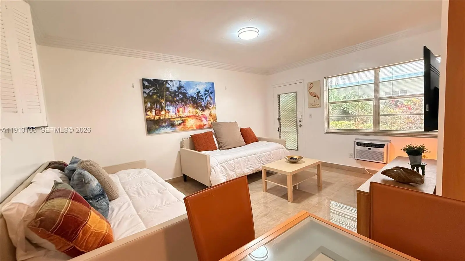 Welcome to your South Beach retreat! This 560 sq. ft. first-floor condo offers 1 bedroom, 1 bathroom, abundant natural light, and a smart layout. Enjoy an updated kitchen with dishwasher, stove, oven, and in-unit washer/dryer. Oversized bedroom feature generous closets, with individual wall A/C units for comfort. Two entry doors add flexibility, plus access to a common courtyard and available parking. Unit #1 next door is also for sale—combine for a larger residence or keep separate with connecting access. Low HOA fees, option to be delivered furnished, and just two blocks from the beach and Ocean Drive. Units #1 and #2 in this building are sold as a COMBO package. Total combined SQ Footage 1,460 (3 bedrooms, 3 full bathrooms, 2 kitchens, two living rooms)