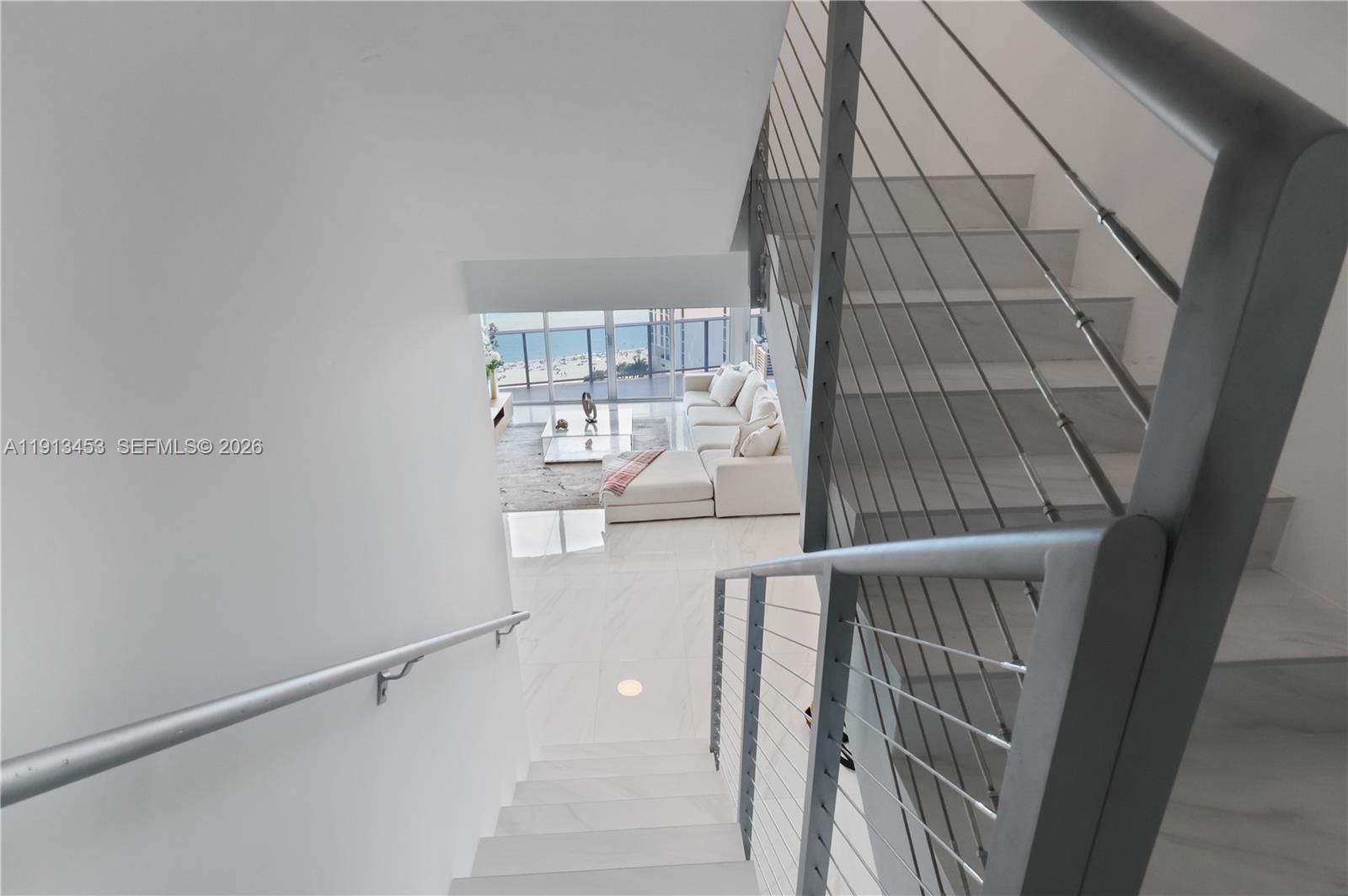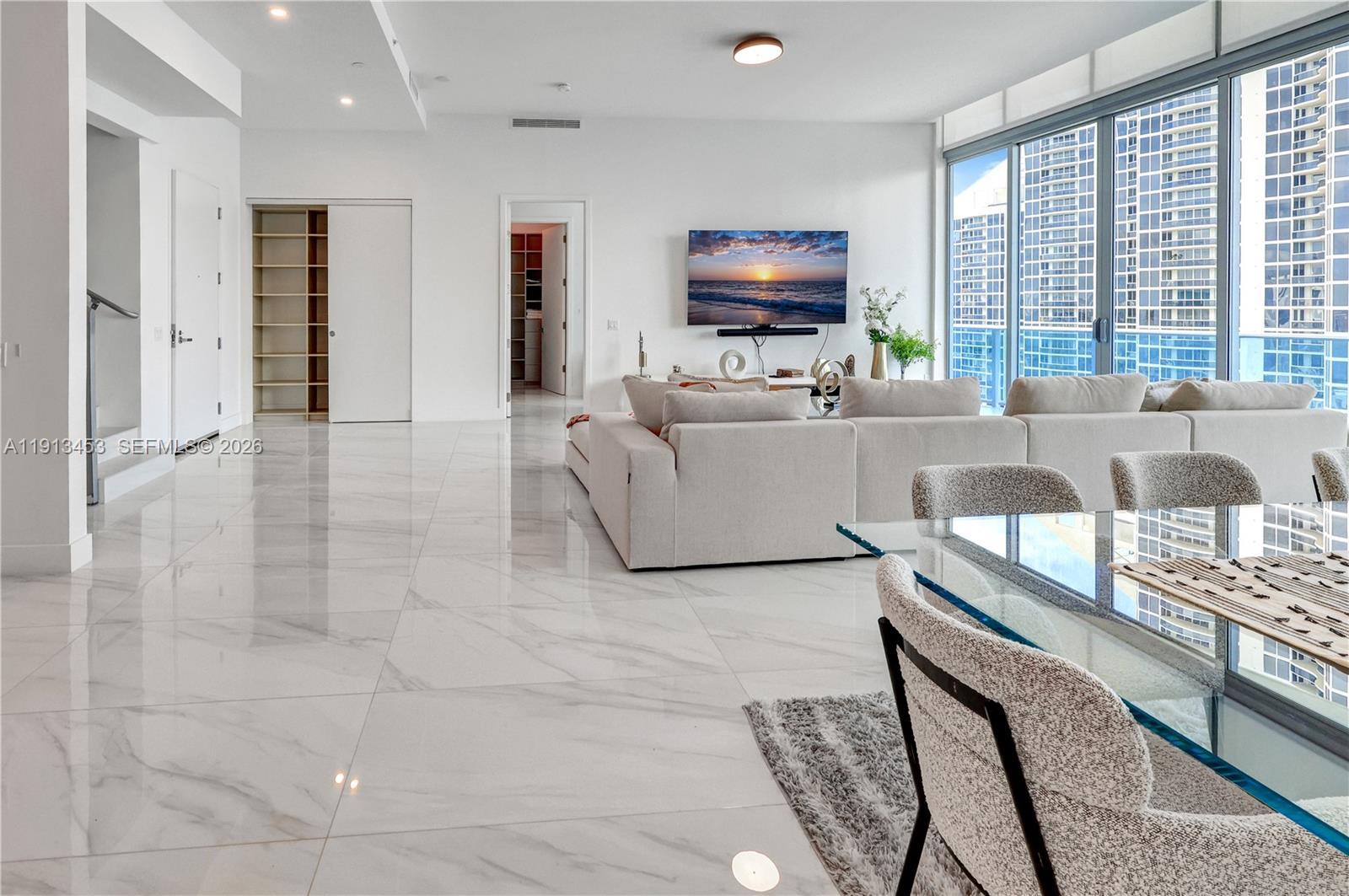 Stunning brand-new ocean-view penthouse in Sunny Isles Beach with private elevator entry and exclusive rooftop access. This exceptional two-story residence features 2 bedrooms, a den on the second level, and 2.5 baths. Floor-to-ceiling windows throughout showcase breathtaking panoramic ocean views. The expansive private rooftop terrace, reserved exclusively for the penthouse, offers an unparalleled outdoor living experience—ideal for entertaining or relaxing above the coastline. Top-tier amenities, including a professional pool on the 4th floor. Prime location within walking distance to the beach, shops, and dining. A rare opportunity for elevated, refined coastal living with privacy and style.