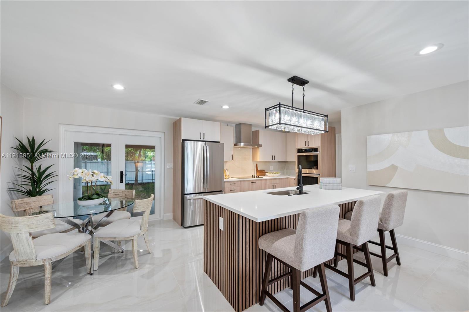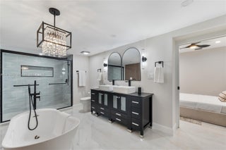 Exquisite 3BR/3BA (extra room that can be used as a bedroom) Miami Gardens home with multi-million dollar finishes! Chef’s kitchen w/ stainless steel appliances, double oven, two-tone cabinets & quartz counters. Primary suite boasts soaking tub, custom tiled shower & dual vanity. Upgrades include HVAC, roof, new floors, doors, recessed & exterior lighting, plus landscaping. Two porches, massive driveway, fenced private backyard, no HOA. Feels like brand new construction—unmatched quality & style. A true one-of-a-kind gem!