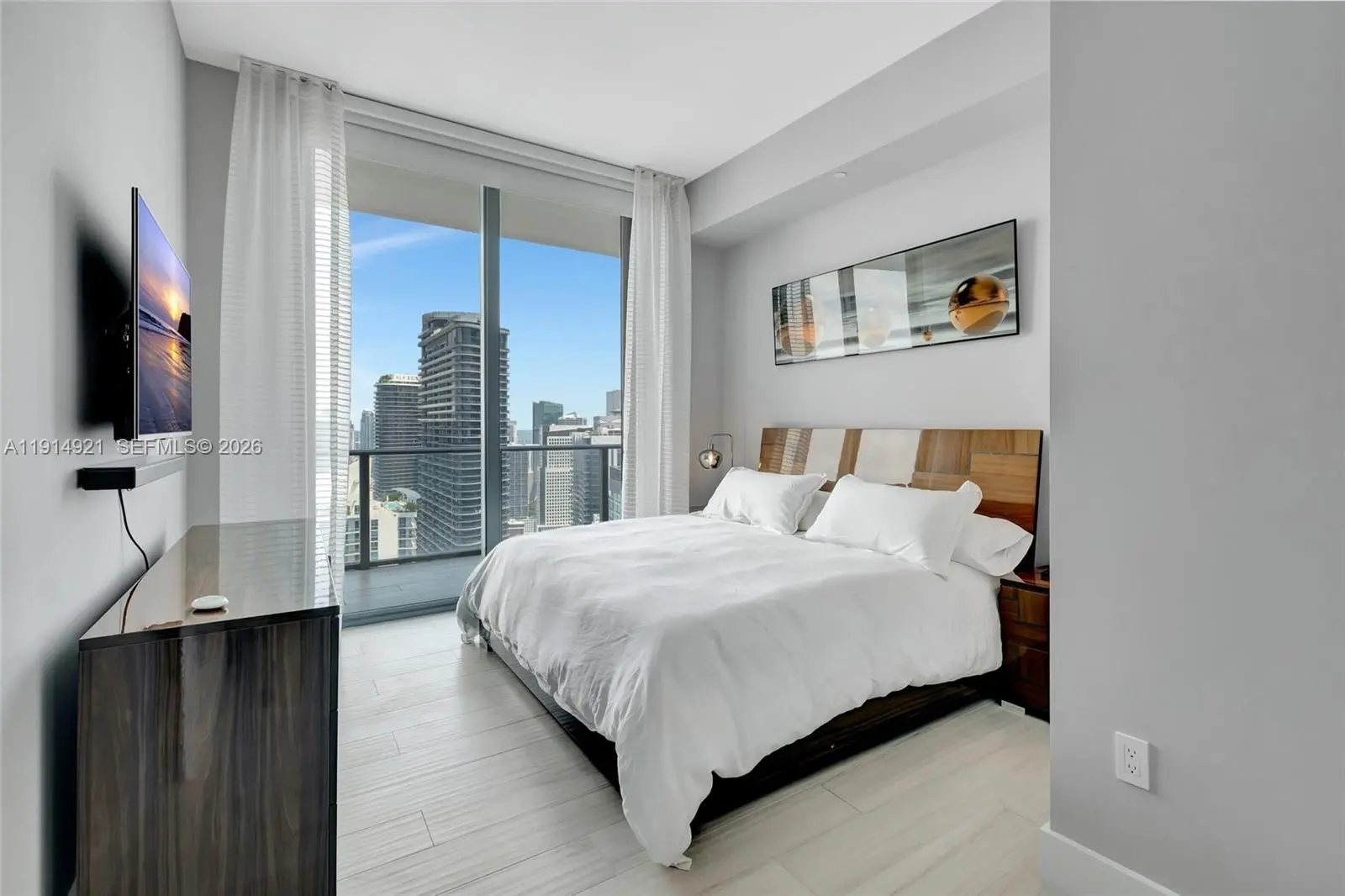 $400K PRICE REDUCTION! Experience elevated living in this spacious northeast corner penthouse offering breathtaking panoramic views of Biscayne Bay, Key Biscayne, Miami Beach, and the dazzling Brickell skyline. Enjoy spectacular city lights by night from a prime vantage point high above it all. This residence features 3 bedrooms with ensuite baths, a den/office, and a guest powder room. Soaring high-volume ceilings and a generous wraparound balcony create an open, airy atmosphere, with multiple access points through high-impact sliding glass doors. The expansive primary suite includes a luxurious bathroom with separate soaking tub, oversized shower, dual vanities, and a walk-in closet. The home is equipped with flat-screen TVs throughout, Bose surround sound, and motorized solar and blackout shades for ultimate comfort and convenience. Additional highlights include two assigned parking spaces and high-speed internet included. Residents enjoy exclusive access to Dua Miami’s luxury amenities, including a spa and residents-only rooftop pool.