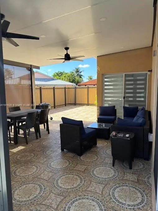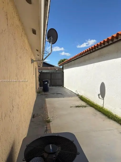Beautifully maintained corner-lot single-family home, fully detached and separated from the neighboring property by a private side corridor spacious enough to park a small boat or up to three cars. Features a fenced yard, manicured patio-garden, and ample parking. Recent upgrades include new porcelain flooring, impact windows, a new A/C unit (less than 1 year old), and a modern gourmet kitchen. The home offers a large living room with an adjacent dining area, a versatile den/flex room that can be used as a home office or guest bedroom, and a 3-bedroom, 2-bathroom split floor plan. Enjoy a beautiful terrace with an entertainment-ready BBQ area. Excellent neighborhood with A+ schools, less than 1 mile from FIU, Frost Museum, and MDC Fair & Expo. No HOA.