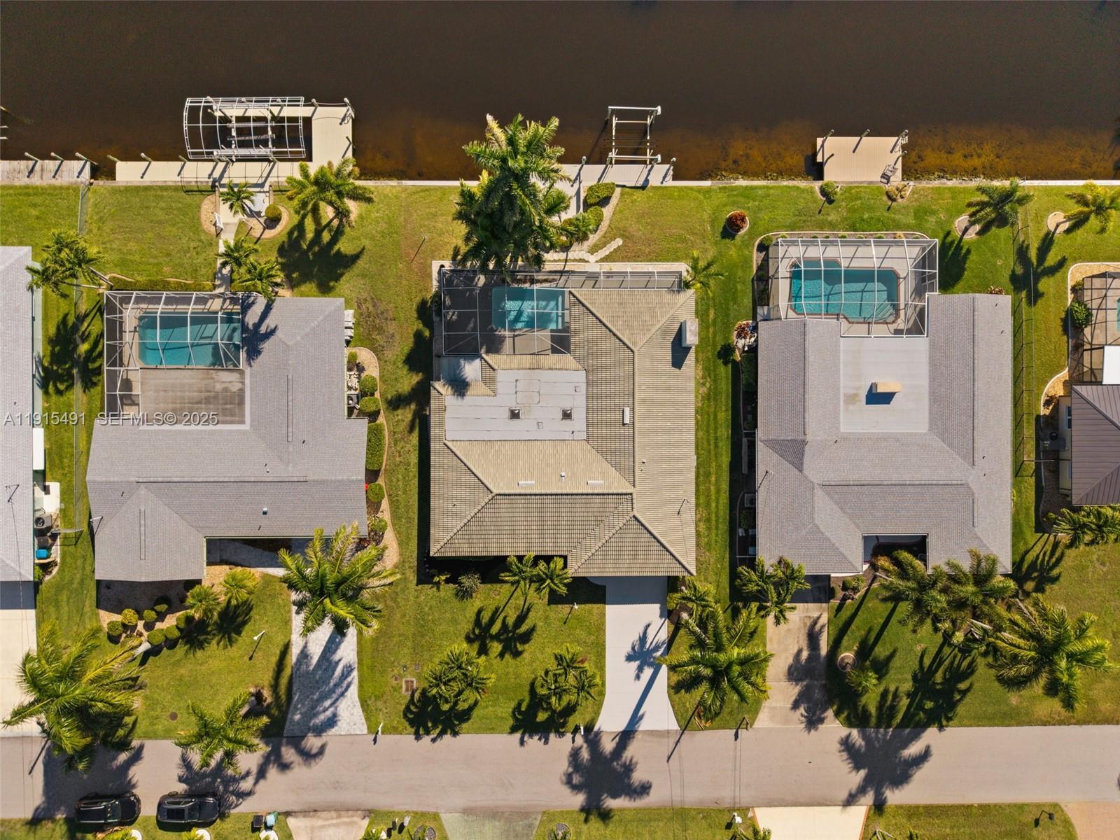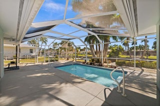 WOW - SPACIOUS INSIDE!! OVER 2500 SQUARE FEET OF RECENTLY REMODELED LIVING SPACE! DIRECT GULF ACCESS! Welcome to this beautifully remodeled Gulf-access home on a quiet cul-de-sac in SW Cape Coral. Enjoy direct sailboat access with no bridges, an 8,000 lb lift, southern exposure, and a heated pool surrounded by tropical landscaping. The open layout features a gorgeous kitchen with a huge island, stainless appliances, soft-close cabinets, and a butler’s pantry. The primary suite has a walk-in closet and updated bath. A guest room opens to the lanai with a sitting room and fireplace, plus an office with its own AC. The bright family room has skylights and sliders to the pool. Updates include impact windows, newer appliances, pool equipment, and more. Close to Tarpon Point and Cape Harbour.