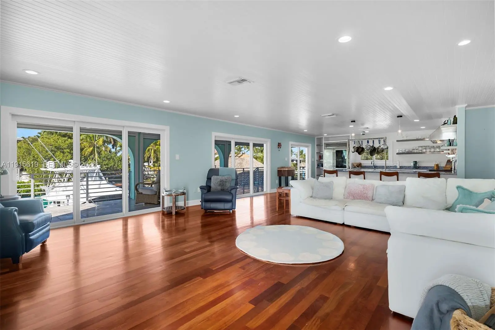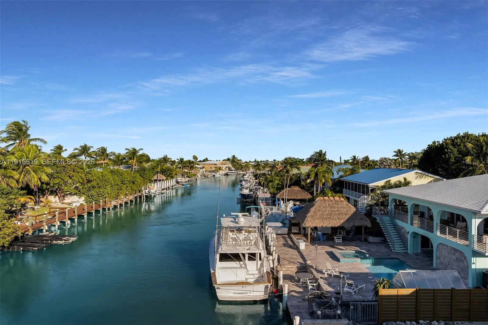 This 2 bed 2 bath home on the second floor. Recently gone through major renovations from top to bottom- inside out. Open concept with brazilian wood floor, fully furnished, chefs kitchen with top of the line wolf appliances. A warp around balcony to enjoy the water and spectacular sunset views. On the lower level you have a one car garage used as storage a separate laundry room, cabana bath and a room. New pool with jacuzzi, hot tub and a tiki hut with a TV. A 75ft dock