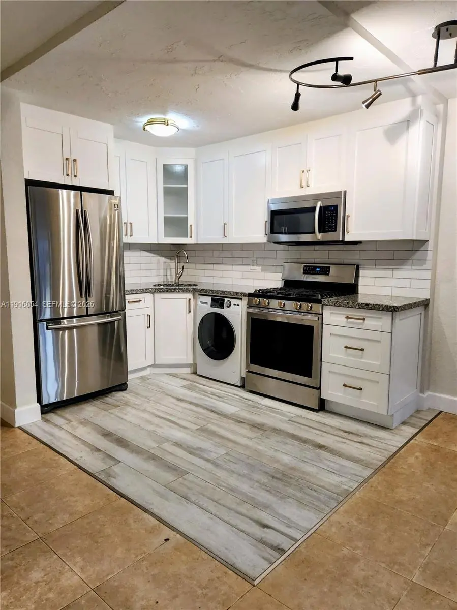 Beautifully updated 1-bedroom, 1-bath condo on the first floor, private balcony, one assigned parking, and all-in-one washer/dryer inside the unit. Gated community. Private access to the Publix Supermarket from the Parking. This light-filled unit features sleek porcelain floors, impact windows and doors, and a large walk-in closet. Relax with a sparkling pool on lush landscaped grounds & clubhouse. Also, has a laundry facility steps from the unit. Gas & water included in rent. Call today, don't delay!
