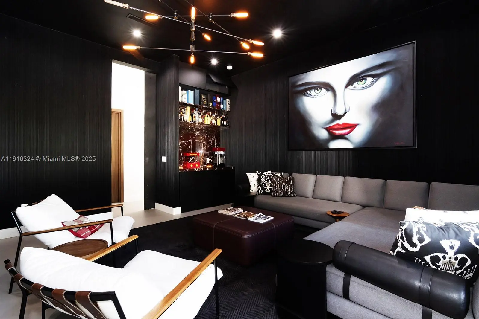 This 5BD/4.5BA ultramodern showpiece—featured on Netflix’s Designing Miami—delivers standout style and turnkey luxury. Completed in 2020, the home offers a theater room, double-sided wine cellar, 8' Italian doors, and custom finishes throughout. The European-inspired kitchen flows beautifully for entertaining, while Juliet balconies add architectural charm. Set on a premium waterfront lot with lush tropical landscaping and a private putting green, this property blends design, lifestyle, and value in one unforgettable offering.