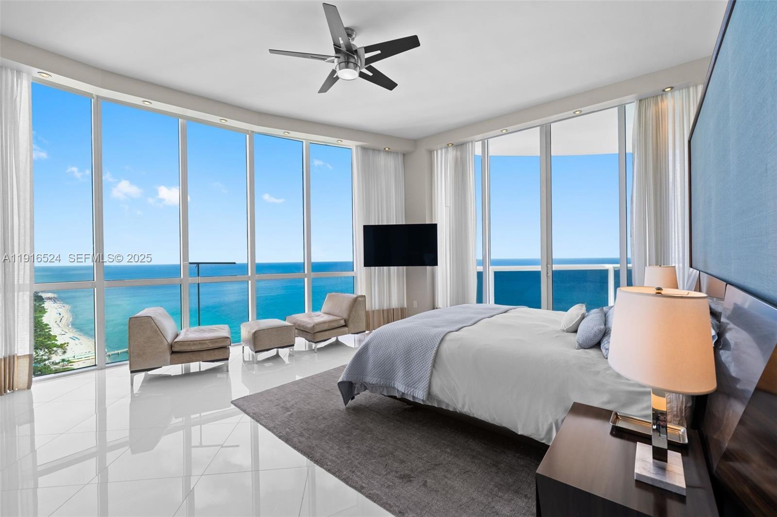 Experience breathtaking ocean, Intracoastal, and skyline views from this stunning 40th-floor corner residence at Trump Tower I. This fully furnished home features rare 12 ft ceilings, floor-to-ceiling windows, private elevator entry, and a smart home system. The open layout offers a gourmet kitchen with top appliances, spacious bedrooms, and brand new washer and dryer. Enjoy a large wraparound balcony and resort-style amenities: beach service, oceanfront pool, state-of-the-art gym, spa, restaurant, concierge, and valet. Prime Sunny Isles location near Bal Harbour and Aventura.