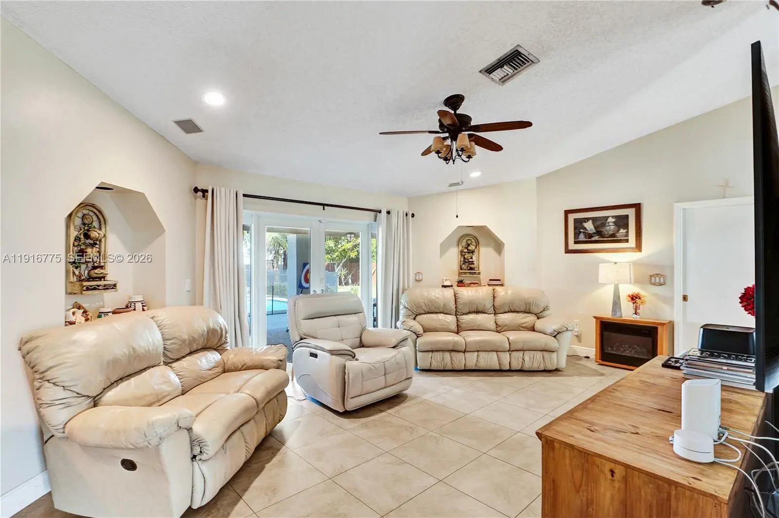 Move-in ready home on a generous half-acre lot, offers comfort and functionality with 4 bedrooms, and 2 bathrooms. This home has been meticulously cared for, with major upgrades already done for you, including complete hurricane impact windows and doors, 2017 roof, remodeled bathrooms and kitchen. Enjoy volume ceilings in the main living areas. The principal suite features double sinks, separate shower, soaking tub & large walk-in closet. Three bedrooms and a cabana bath are located on the opposite side of the house. The real showstopper is the massive fenced backyard—a rare find in today’s market. Enjoy a huge covered patio, sparkling swimming pool, and plenty of room to entertain, play, or expand. There is space to park a boat or RV and never worry about parking with a two-car garage + oversized driveway for multiple vehicles. Easy to show, call today to schedule a tour.