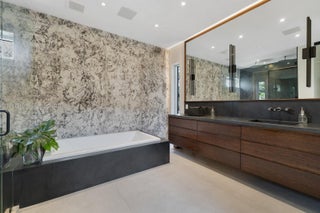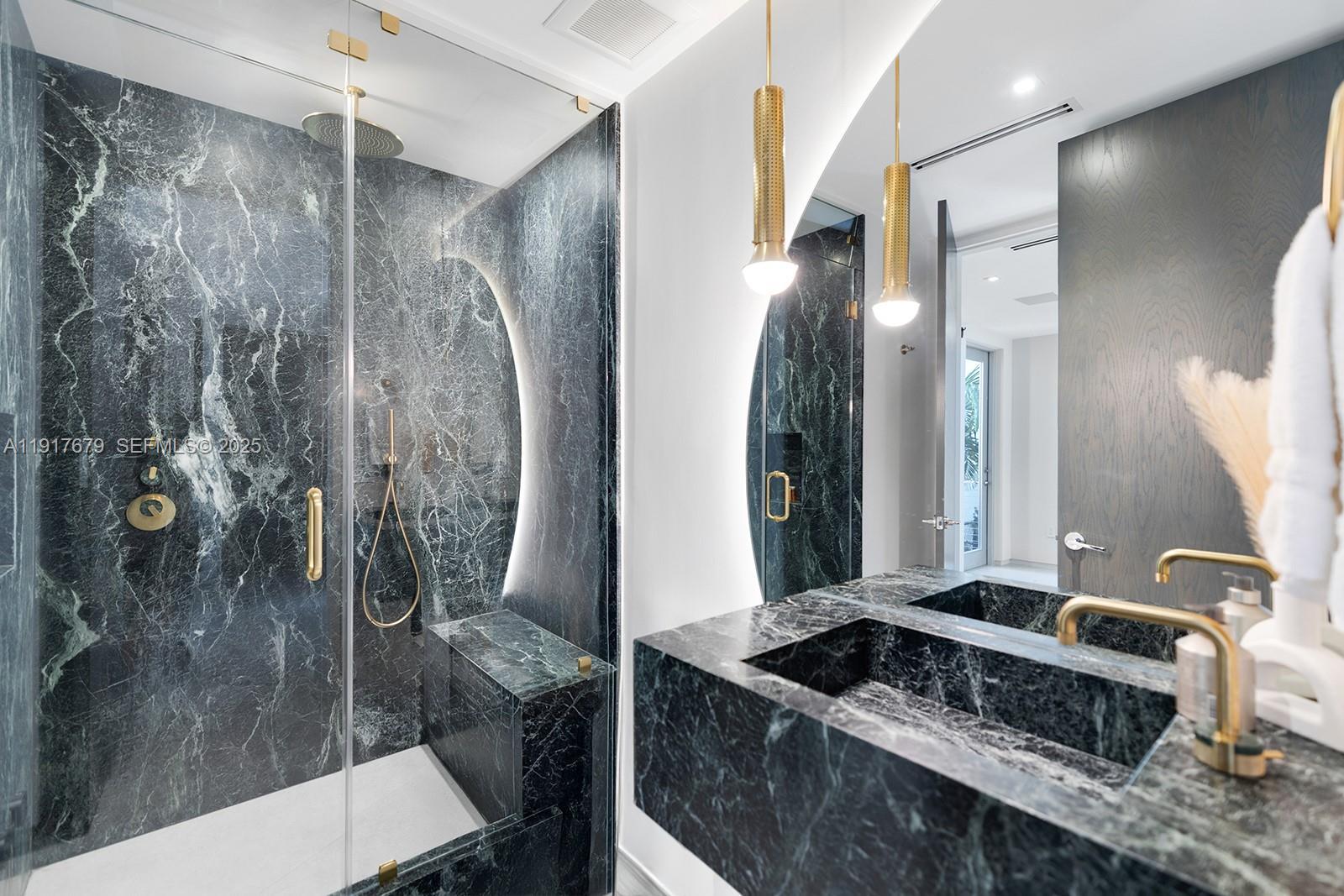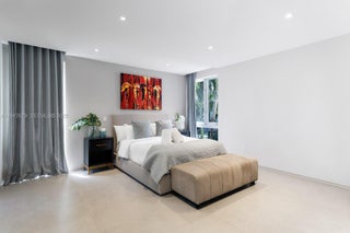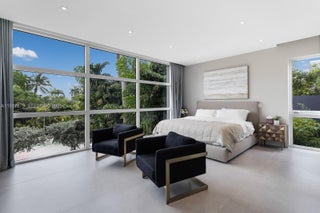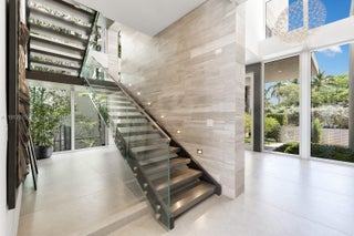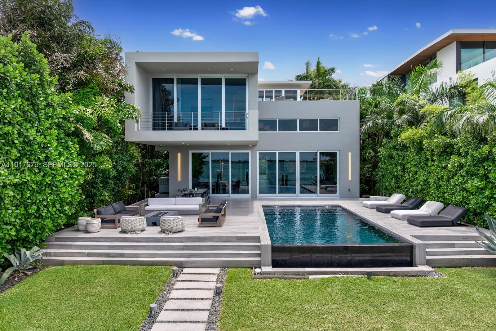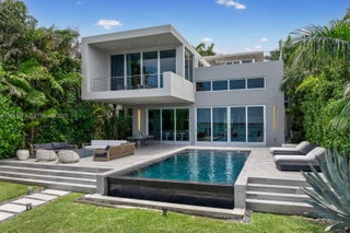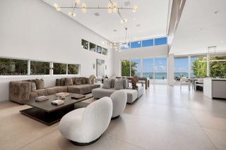 Experience the ultimate blend of waterfront serenity & modern luxury in this 5BD/5BA masterpiece, inspired by earthy sophistication. Enjoy 60' of open bay water frontage, a heated saltwater Infinity-edge pool & outdoor lounging areas. Grand open living spaces transition effortlessly to the outdoors, creating an ideal setting for entertaining. A sleek sunroom with floor-to-ceiling glass captures natural light & opens to an expansive rooftop terrace. Inside, the chef’s kitchen is outfitted with Taj Mahal quartzite, a custom island, bespoke cabinetry & Subzero/Wolf appliances. Travertine-clad walls & ambient-lit stairs frame the foyer. Primary suite features custom millwork, infinity leather-wrapped panel & steam shower. RH furnishings & curated finishes complete this one-of-a-kind residence.