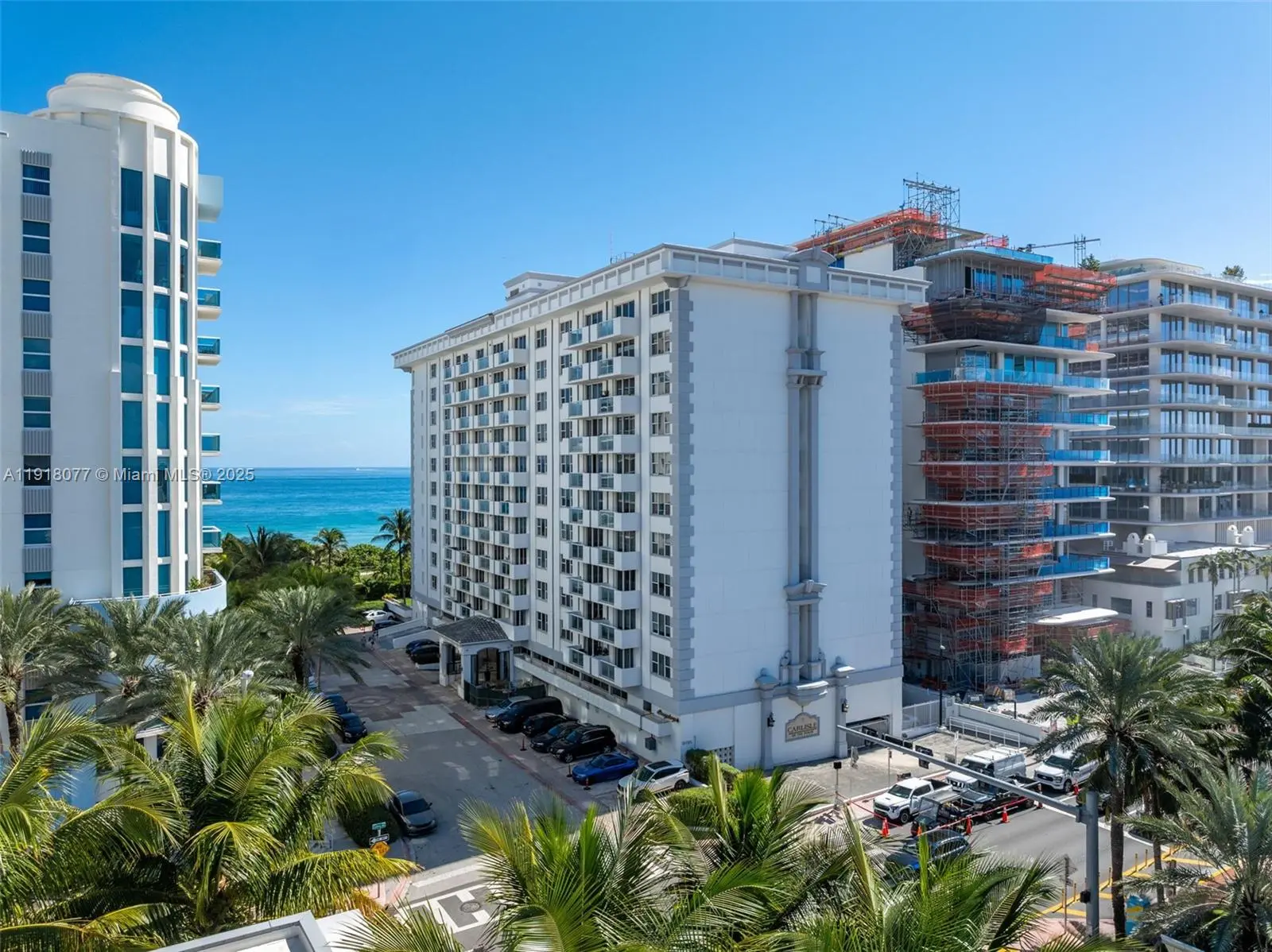 PH-level 1BD/1BA corner residence at The Carlisle on the Ocean, measuring 860 SF and featuring 9-foot ceilings and bright southwest exposure. Deeded upper deck parking spot. This spacious layout offers beautiful natural light and city views. The Carlisle is an oceanfront building with direct beach access, 24/7 security, valet, gym, and pool. Recent building upgrades include a brand-new roof. Enjoy beachside living just moments from Bal Harbour Shops, Surfside dining, and the oceanfront path.
