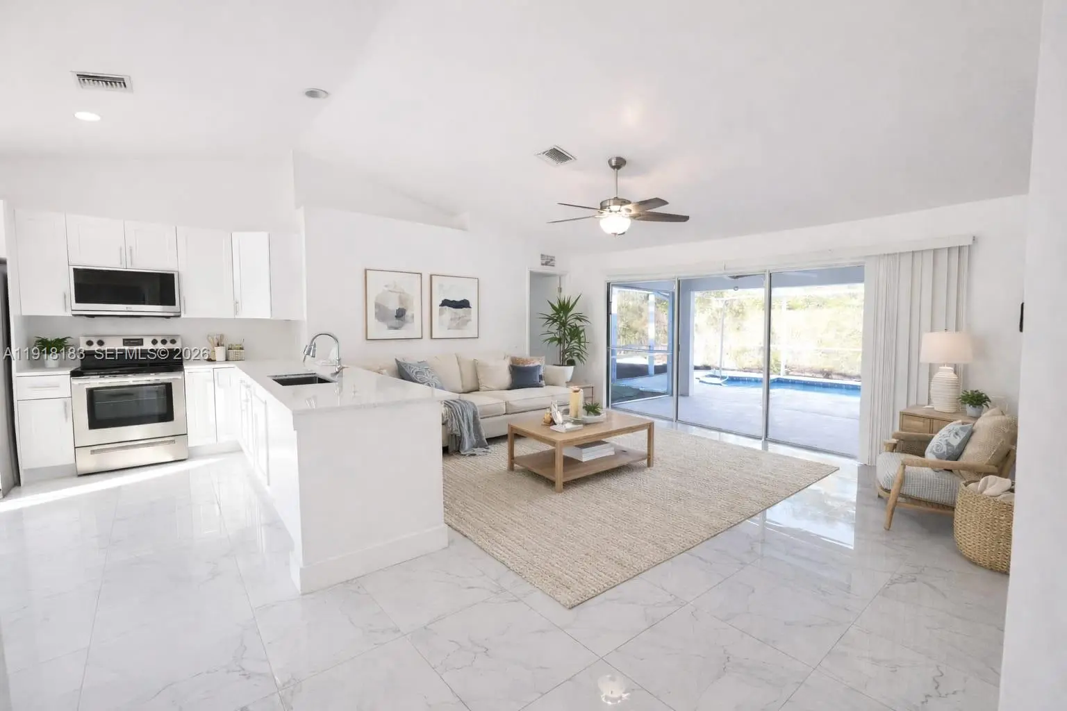 SELLER OFFERING 10K BACK FOR CLOSING COST ASSISTANCE!!! Fully renovated -move-in ready and designed for modern living. The kitchen features brand-new cabinets, countertops, and appliances, making meal prep a pleasure, while the bathrooms have been completely updated with new tile, stylish shower heads, and modern fixtures. Tile flooring flows throughout the home, complementing the bright, open layout with cathedral ceilings and a split-bedroom design for added privacy. Step outside to a private, screened-in pool and spacious lanai, perfect for entertaining or relaxing in the Florida sun. Additional upgrades include an epoxy-coated garage floor, wall-mounted pest tubes, and a roof approximately 9 years old, offering peace of mind.