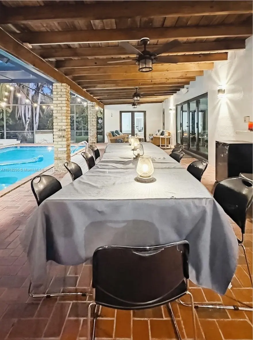 Beautiful and spacious corner house set on a 15,000 SF lush, landscaped lot, offering 5 bedrooms and 3 full baths, including an independent area that can be used as an in-law suite or studio, with walk-in closet, separate entrance and dedicated parking space. Enjoy outdoor living with an expansive screened terrace perfect for gatherings, a new wood deck suited for multiple loungers, a generous pool, fire pit, avocado tree, tropical palm gardens, elegant orchids, a built-in sound system, and extra yard space suitable for boat parking. Inside, enjoy an updated white granite kitchen with stainless steel appliances, double oven, generous pantry, breakfast area, impact windows throughout the house. This home offers an ample and bright formal living room, dining room, and a family room that includes a glass-enclosed area that can be used as a bar or wine storage. The primary suite conveniently offers a walk-in closet plus a full wall-to-wall closet. Other rooms include ample wall closets and energy saving fans. Bathrooms have been updaded with double-sink vanities. Additional highlights include water sprinkler system, 1-car garage with impact glass door, 1-car carport, driveway parking for up to 5 vehicles, and a newer 5-year-old roof. Located just minutes from the 826 Expressway, US1, Baptist Hospital, The Falls, Dadeland Mall, Whole Foods, top-rated schools. This private retreat, located in one of Miami’s most desirable non-flood-zone neighborhoods, is attractively priced to sell
