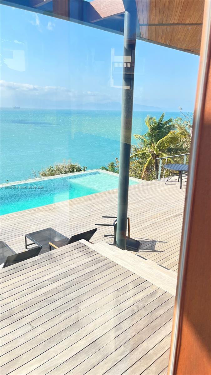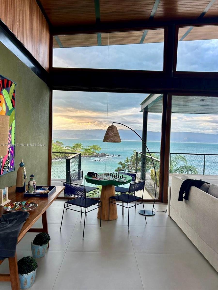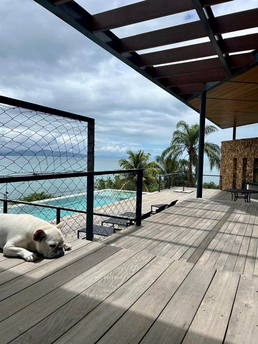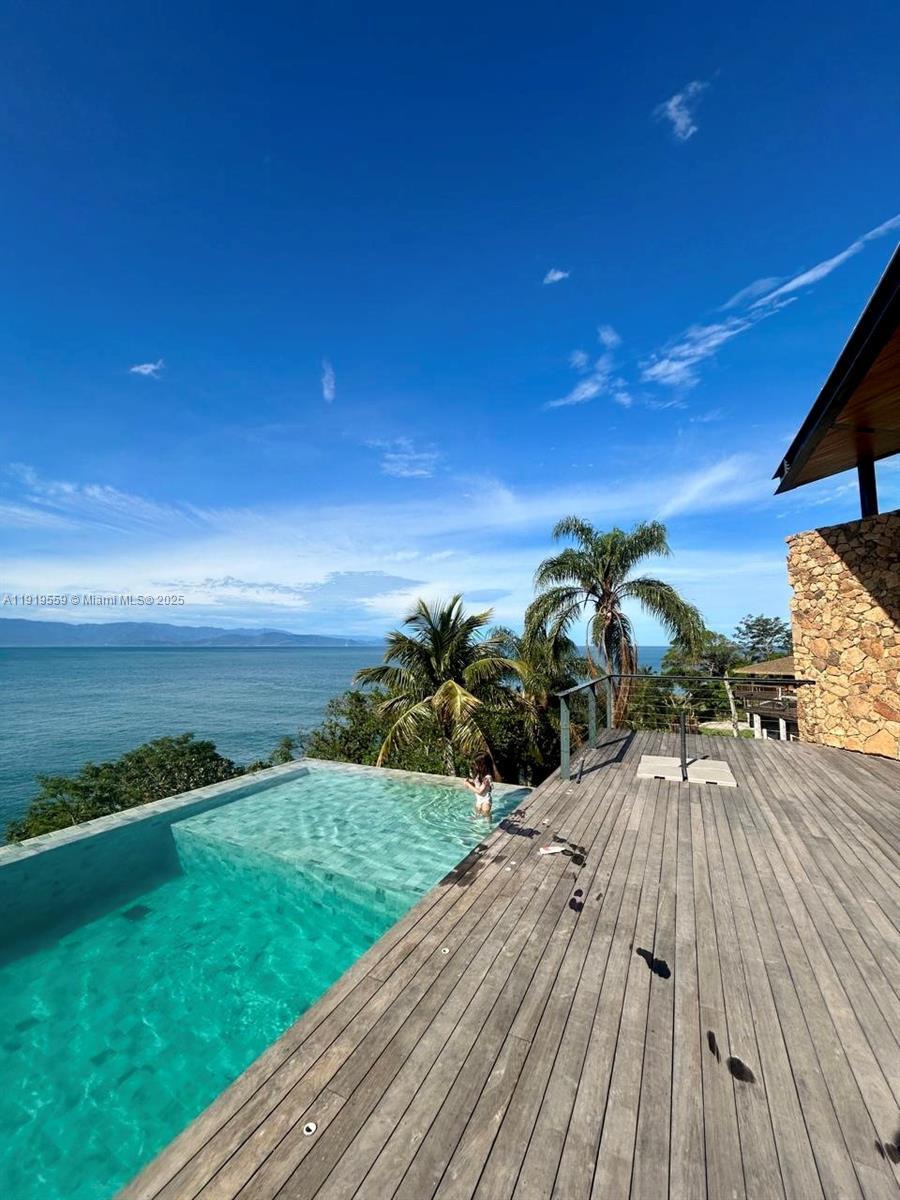 Amazing, fully furnished contemporary home in Praia do Pacuíba, Ilhabela (São Paulo, Brazil). Built in 2024 and offering breathtaking water views from every room. This luxurious residence features 5 spacious en-suite bedrooms, impressive master on the ground floor, individual split system a/c in every room, a family room, a loft, and elegant porcelain flooring throughout. Enjoy an infinity-edge pool, barbecue area, and an expansive deck perfect for entertaining. Just a 5-minute walk to the beach. A mooring buoy accommodating boats up to 60 ft is already installed, and the property includes an approved project for a private pier. Alwitra roof. Located in an exclusive gated community with 24-hour security. Truly turn-key and ideal for your most discerning buyers.