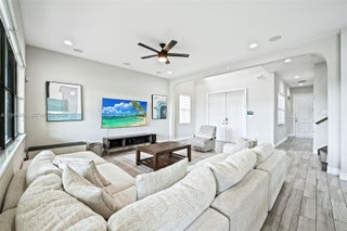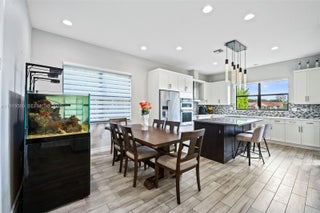 Enjoy serene water views from both the front and backyard of this Executive Series home—your own private oasis. This beautifully maintained 4-bedroom, 2.5-bath residence with a 2-car garage offers an open-concept layout with tile flooring throughout all main living areas, high-volume ceilings, and pre-wired surround sound in the living room for an open, bright, and inviting feel. The spacious kitchen features stainless steel appliances, a walk-in pantry, and a professional range hood. Step outside to an extended patio ideal for outdoor dining, grilling, and entertaining. Additional features include impact windows and doors, a Tesla-ready charger outlet in the garage, and generous storage throughout. Located in Raintree, a premier gated community offering resort-style amenities including a swimming pool, lounge area, children’s playground, clubhouse, and multipurpose room. HOA includes lawn care, sprinkler maintenance, and mulching for added convenience.