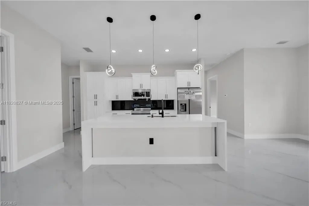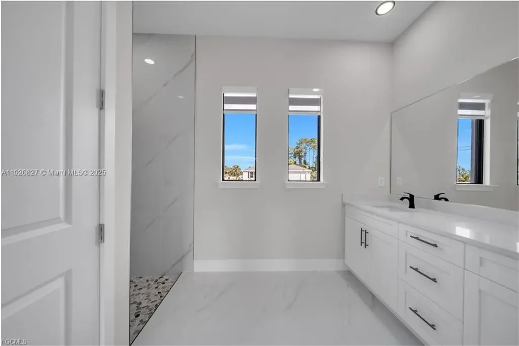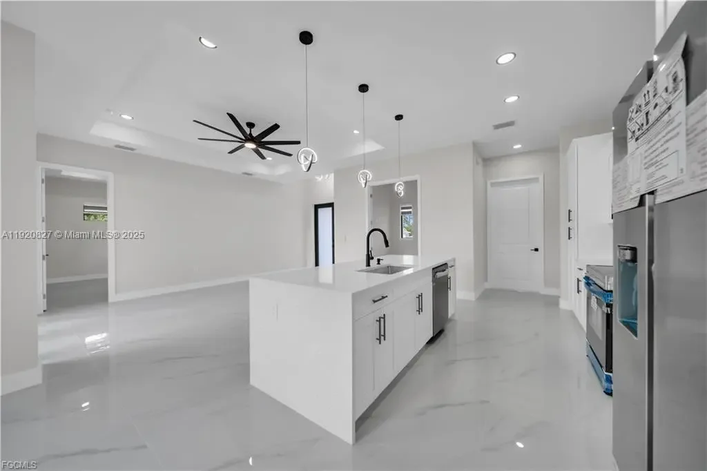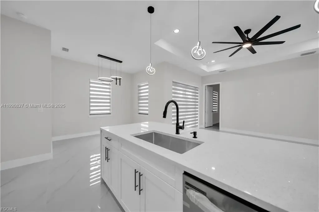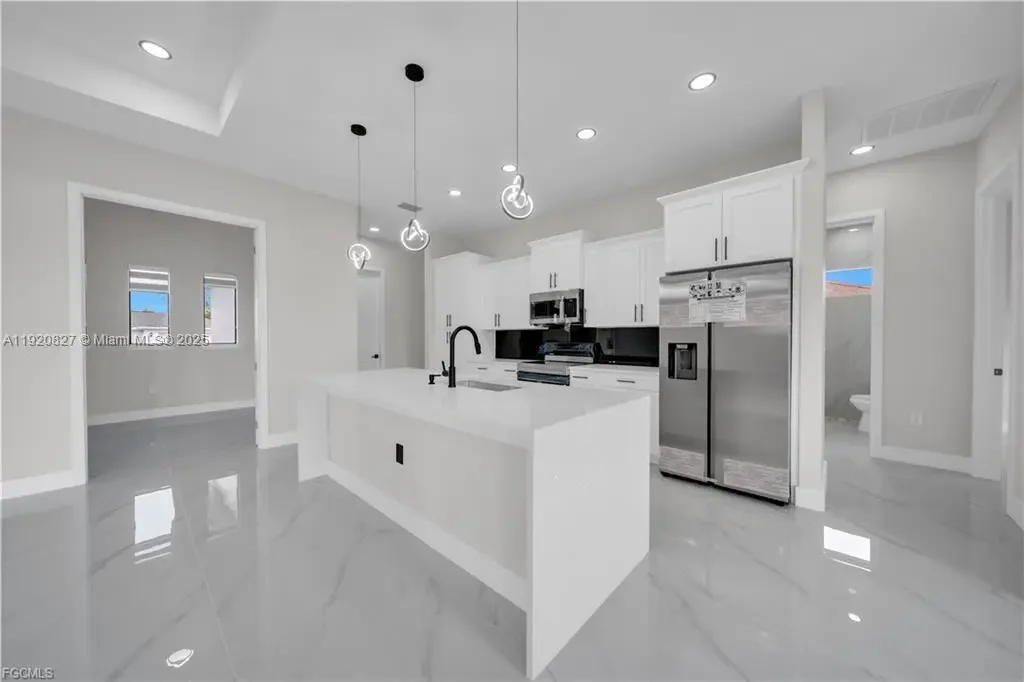 Beautiful New Construction!!! Excellent location! Just blocks from Lee Blvd. Corner in a dead end!! You are sure to love !!!This beautiful home features 3 bedrooms, 2 and a half bathrooms plus Den with a spacious 2-car garage. open-concept kitchen featuring an island with room for seating and a perfect gathering spot for family and friends. This home offers an Traditional eat-in. Quarts counter tops, wood cabinets and Stainless-steel kitchen appliances, including refrigerator, dishwasher, microwave, and range. Master suite includes walk in closet, dual sinks, tiled shower with glass door enclosure. Porcelain Tile Floor throughout, Impact Windows and doors. double door entry. Lanai is relaxing. Not located in a flood zone!!! ---Refer to supplemental remarks for complete description!