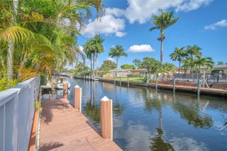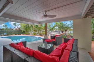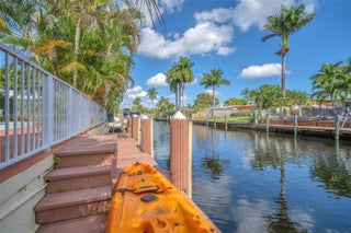 Discover this beautifully updated ocean-access home in highly sought-after Lauderdale Isles, offering 3 bedrooms plus a versatile additional room. This rare partial two-story waterfront property features two private en-suite bedrooms with one conveniently located downstairs and another on the upper level. A custom teak staircase with yacht-style railings leads to the expansive upstairs suite, complete with a large bedroom, walk-in closet, and full bath. Enjoy seamless indoor-outdoor living with a wraparound second-level balcony and exterior stairs that flow down to the tropical pool area, lush landscaping, and spacious lanai with a wet bar—ideal for entertaining. The home is fully equipped with impact windows and doors, ensuring security and peace of mind. With parking for 6+ vehicles plus a garage, this property stands out for both livability and convenience. Enjoy fast ocean access with no fixed bridges, making it perfect for avid boaters with 72’ of water frontage. The additional flex space makes an excellent 4th bedroom, home office, den, or creative space—perfect for today’s remote-work lifestyle. Your waterfront lifestyle awaits—just bring your boat!