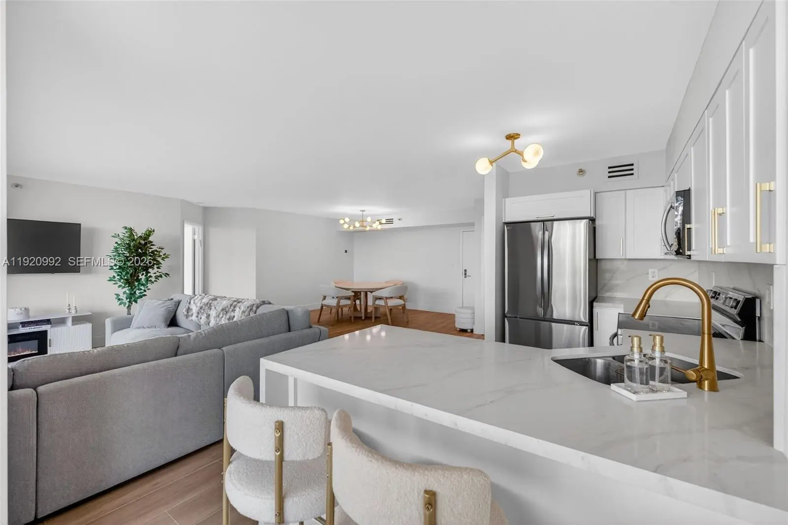 WOW! NEW-NEW-NEW! JUST COMPLETED STUNNING CONTEMPORARY 100% RENOVATED WHITE LIGHT & BRIGHT SPACIOUS 2 BEDROOM/2.5 BATHS WITH SPLIT PLAN. BEING OFFERED FURNISHED! ALL NEW STATE OF THE ART WHITE OPEN KITCHEN. ALL NEW BATHROOMS - TOTO TOILETS. THE FINEST FINISHES - NEW PORCELAIN FLOORS THROUGHOUT - CUSTOM LIGHTING - CUSTOM CLOSETS - CUSTOM SHADES & MORE! NEW AIR CONDITIONER AND NEW WATER HEATER. WASHER/ DRYER IN UNIT! NOTHING ORIGINAL REMAINS. A GEM! Enjoy the Five Star Amenities of Mystic Pointe ranging from Tennis Courts & 4 Pickleball Courts w/instructor lessons available, Full Service Marina, Resort Style Pool, Clubhouse, Gym, Spa, Card Room, Library, Billiards, Kid's Playground, Dog Park, Valet, Concierge, 24/7 Security and Gated Access, Tennis/Pickleball, Market/Convenience Store, The Green Restaurant, Beauty Salon, + so much more!