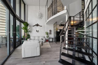 Stunning two-story industrial loft in the heart of Brickell featuring dramatic double-height ceilings, expansive glass walls, and unobstructed skyline views that transform every room into a visual masterpiece. This 1,337 sq ft open-concept residence is bright, modern, and truly one-of-a-kind—perfect for those seeking style, architecture, and energy in one of Miami’s most vibrant neighborhoods. The sleek black kitchen includes full-size stainless steel appliances, updated cabinetry, open shelving, and generous counter space ideal for cooking and entertaining. The loft bedroom overlooks the main living area with privacy glass sliders, custom closets, and flexibility for workspace or lounge seating. Two modern full bathrooms are finished with contemporary black and gray textures, frameless shower glass, and designer fixtures. Enjoy indoor-outdoor living from your private balcony overlooking the city. Offered fully furnished for a seamless turn-key move-in or investment. Neo Vertika delivers resort-style amenities including fitness center, rooftop pool, security, valet and more. Walk to Brickell City Centre, restaurants, shops, MetroMover, art, and nightlife. A rare opportunity to own an architecturally distinct duplex home with exceptional design and location.