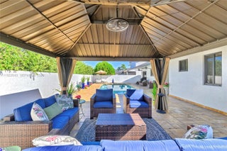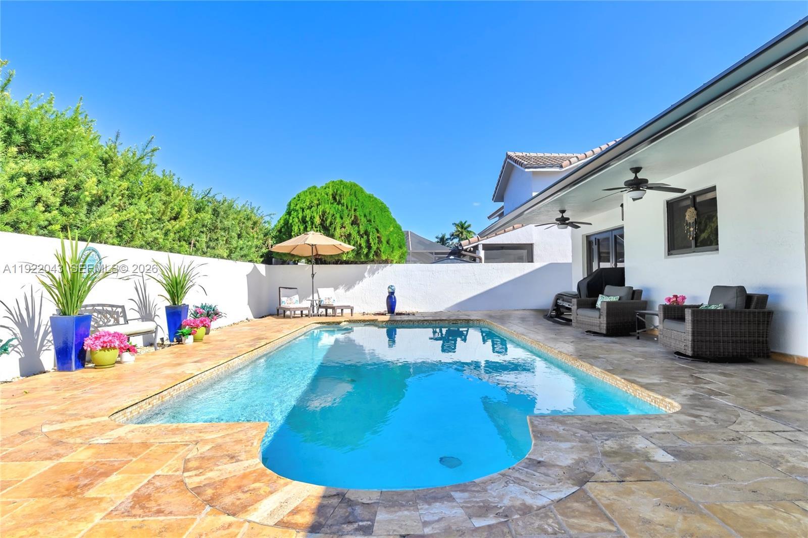 This Miami Lakes home is located in Royal Oaks and has been totally remodeled. Features include a newer kitchen with SS appliances, quartz counter tops, new aluminum roof, impact windows and doors, vaulted ceilings, circular drive way, recessed lighting throughout, Concrete Fence, marble pool deck with pergola for entertainment outdoors and escaping summer heat, cover patio and more .This is a must see ready to move into home.
