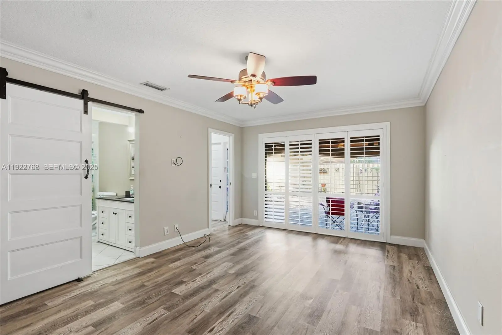 Beautifully updated home with luxury vinyl flooring, recessed lighting, and an updated kitchen with granite countertops and a skylight. The main bedroom features an en-suite bath and custom walk-in closet with built-in shelving and a barn door. Plantation shutters add privacy and style in the main bedroom and living area. Enjoy the private, fully fenced courtyard under the remote-controlled Sunsetter awning, plus Category 5 Storm Smart hurricane protection throughout. The property has an energy-efficient A/C (2023), washer & dryer (2024), updated electrical panel, tankless water heater and roof was replaced in 2017 by HOA. Rainberry Bay is a gated active adult community with 24-hour security offering resort style amenities including tennis courts, pickleball courts, bocce, clubhouse, theater, fitness center, ping pong, billiards, library, 5 pools, spas and more. The maintenance fee includes high-speed internet and cable. Ideally located near the clubhouse, pools, and lake, and minutes from the beach.