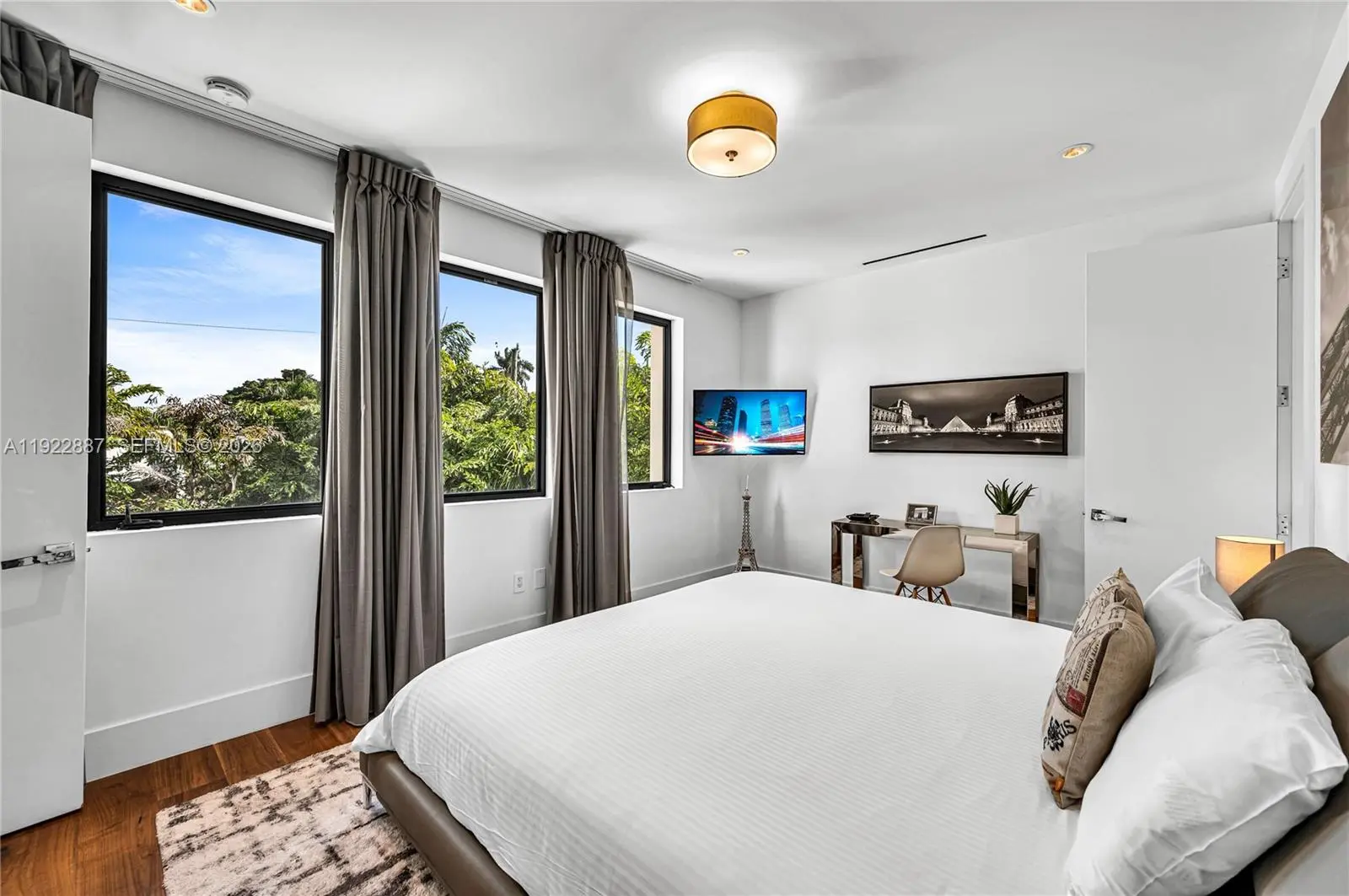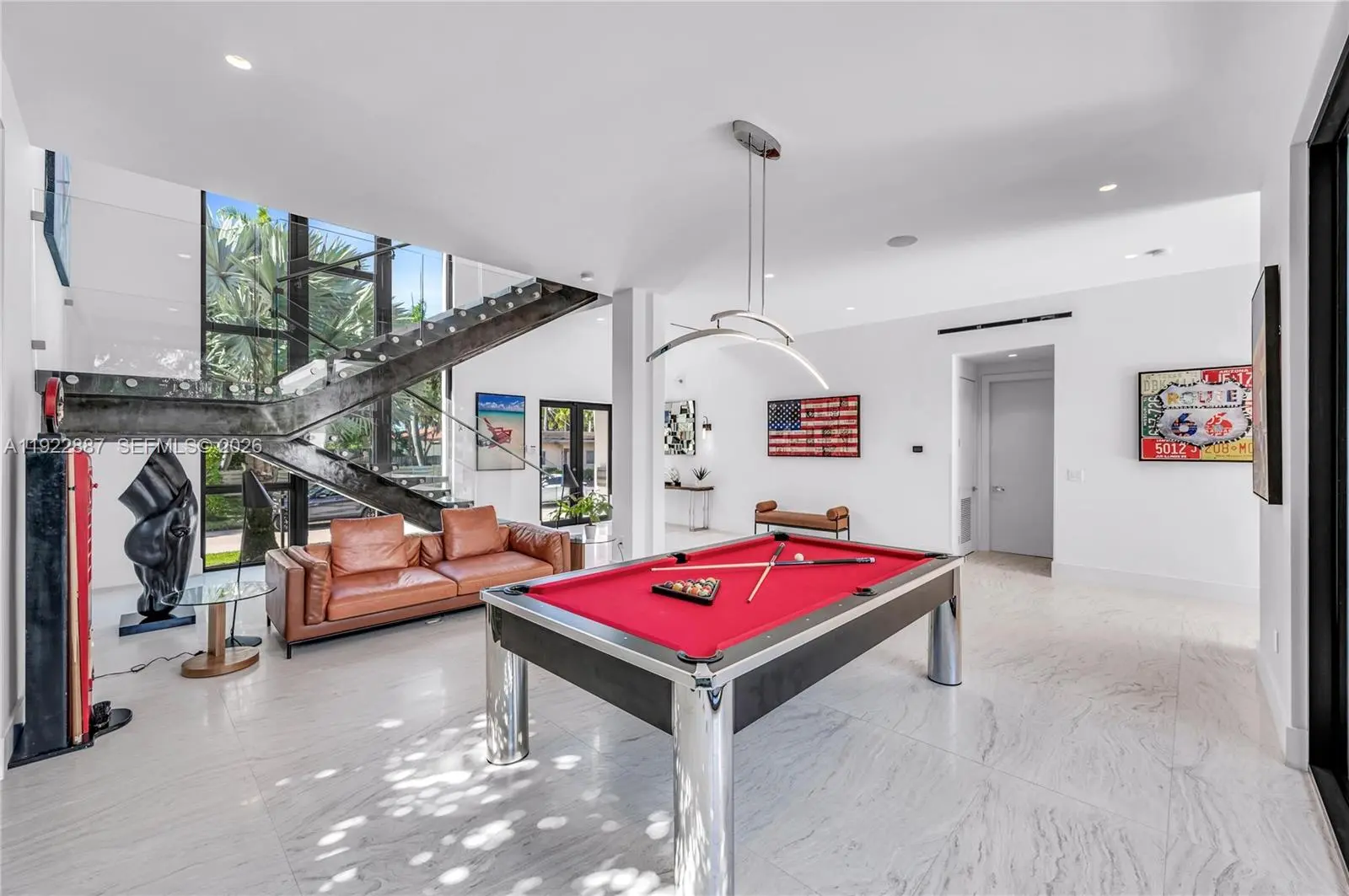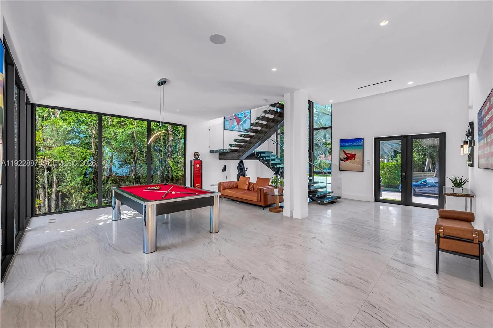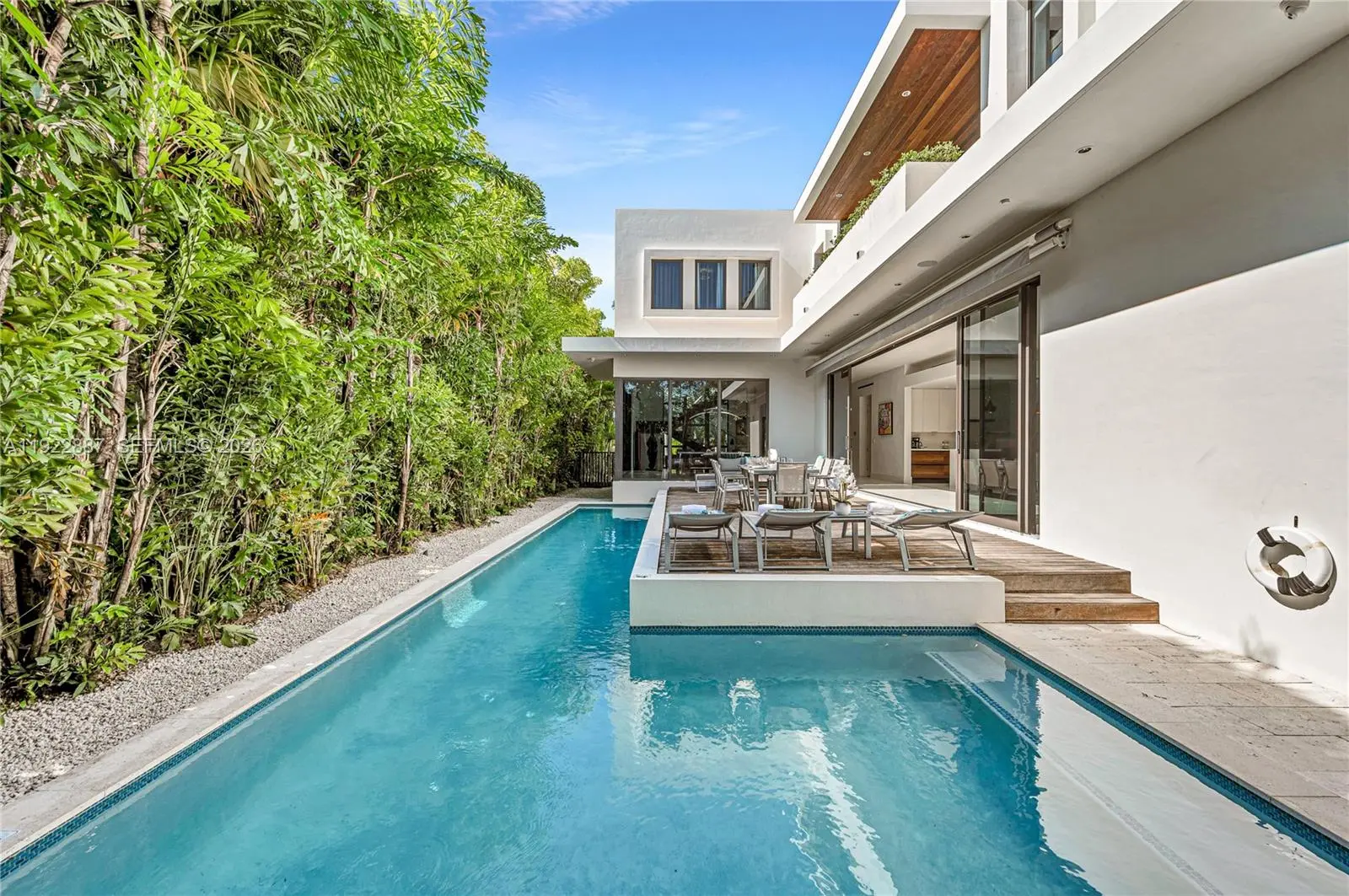 Luxury modern 5BD/5.5 BA turn-key furnished home with just under 4,700 sqft of living space plus a 2-car garage, located on the gated island of North Bay Island. This recently built two-story residence features soaring ceilings, expansive open living areas, impact windows and doors, and sleek finishes throughout. All bedrooms are en-suite with built-out closets and blackout curtains for comfort and privacy. The backyard offers a heated pool and space to entertain. Centrally located just 20 minutes from Miami International Airport, 15 minutes from Downtown Miami, and about 12 minutes drive from the top rated private schools. Also conveniently close to Bal Harbour Shops, and the best of Miami Beach shopping and dining.