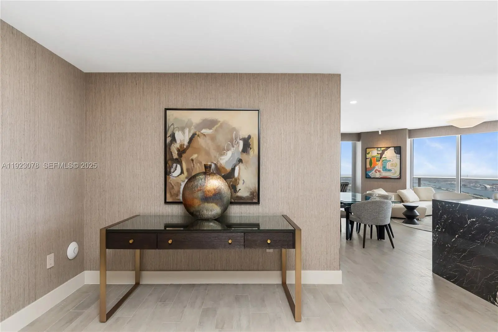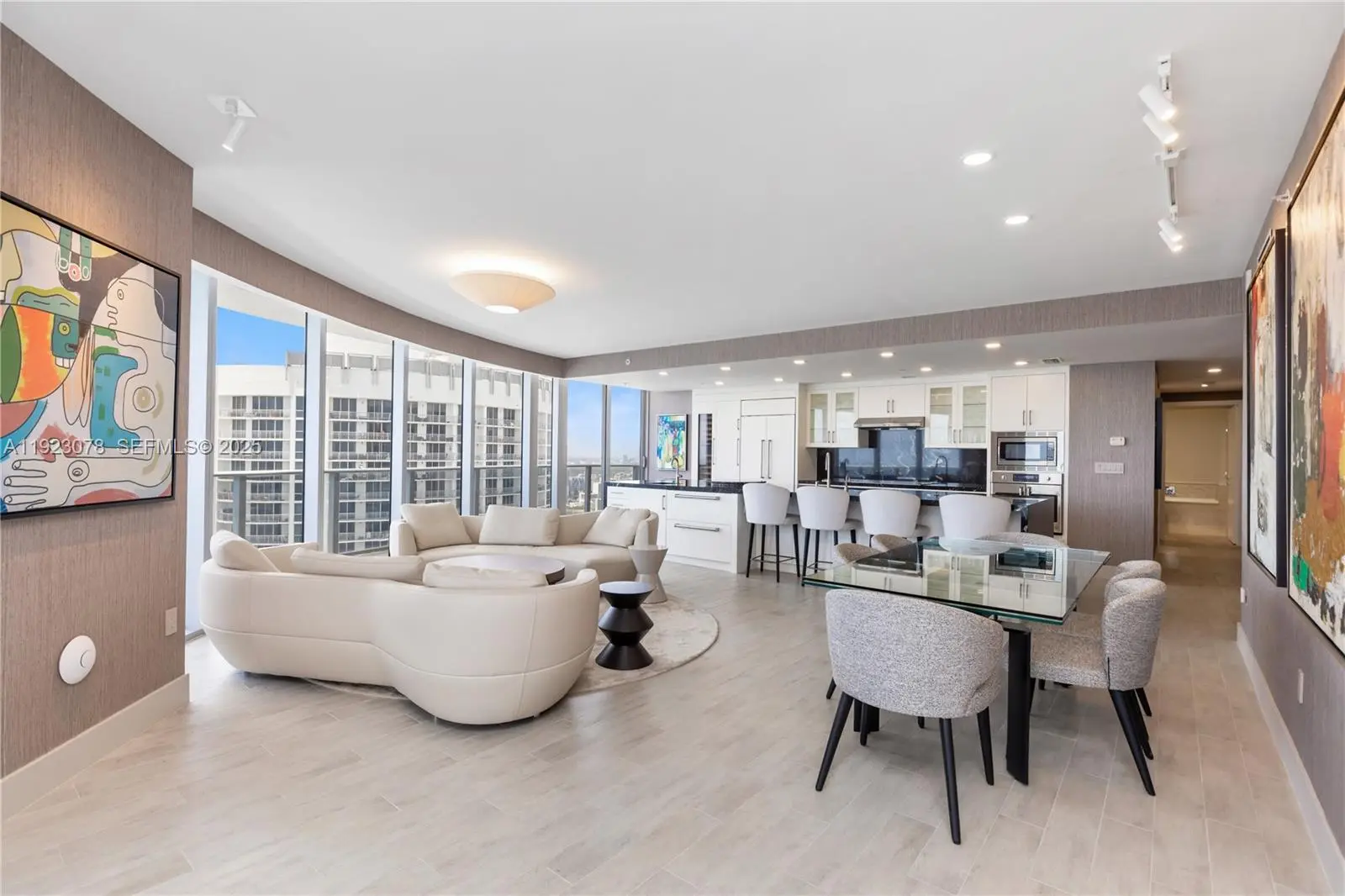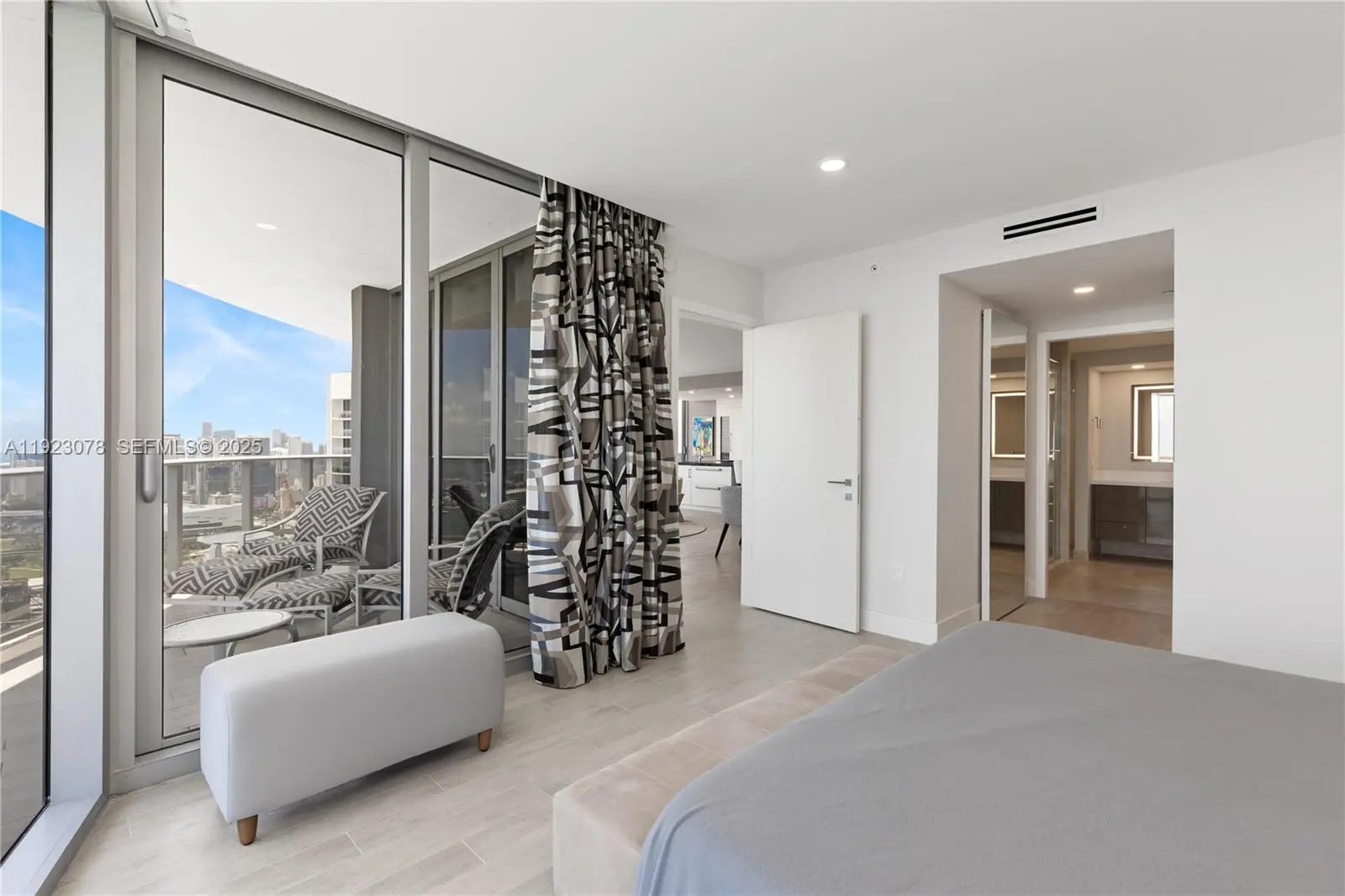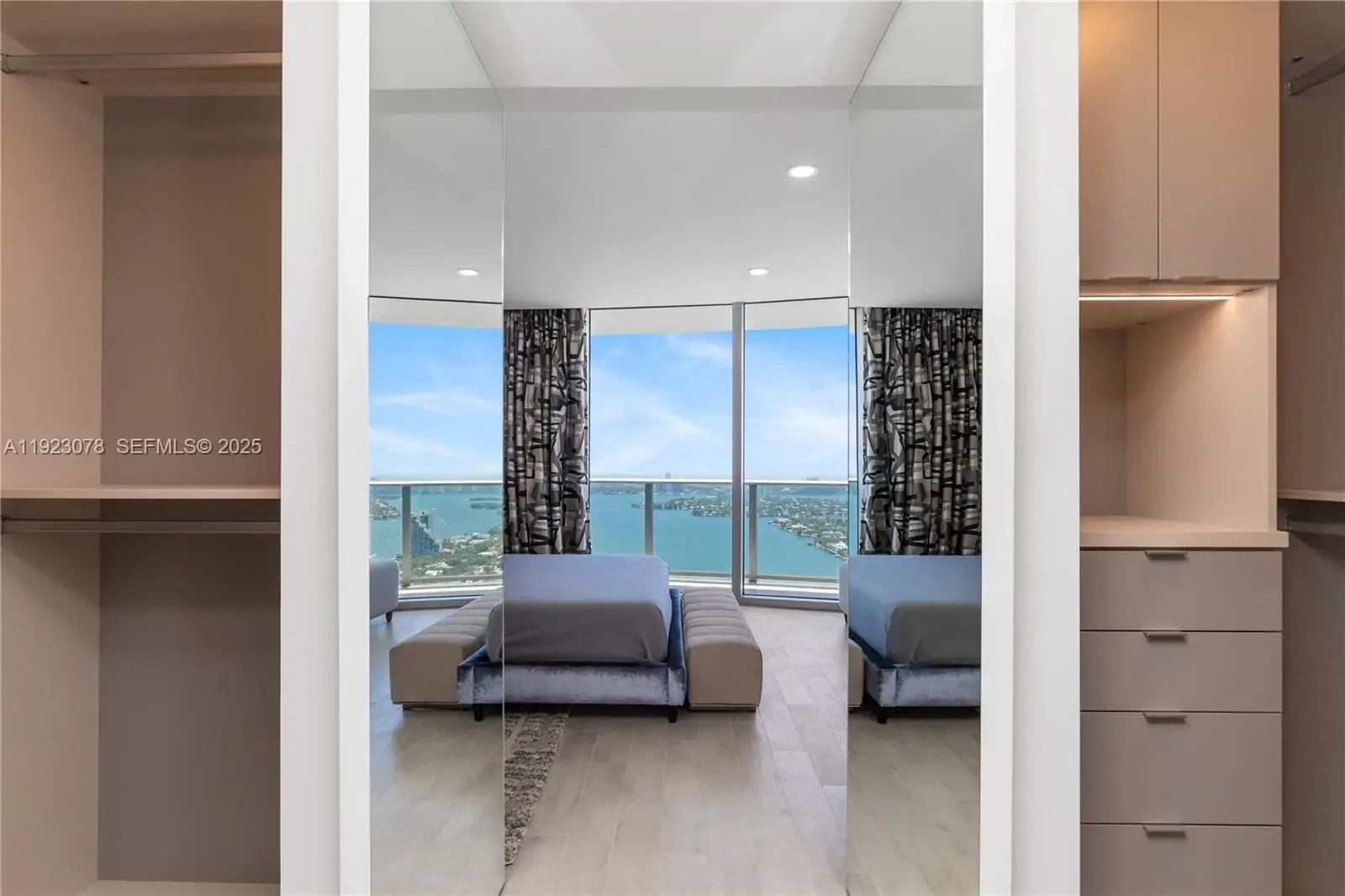 Completely upgraded with unobstructed panoramic views of Biscayne Bay, Miami Beach, Downtown Miami, and the Atlantic Ocean. This exceptional 3-bedroom + den, 4-bath residence features meticulously curated interiors and refined upgrades throughout. Tax Roll Interior: 2,018 Sq Ft (unit measures 2,365 Sq Ft per developer floor plan). Every detail has been thoughtfully elevated beyond developer standards, showcasing luxury finishes that exude sophistication. No expense spared, no detail overlooked. The residence features a custom-designed kitchen (not developer-built) with a dedicated mini-bar area, Sub-Zero refrigerator, freezer drawers, and two Sub-Zero wine coolers, ideal for elevated entertaining and refined daily living. Additional upgrades include Lualdi Italian doors by Piero Lissoni, wired-in electric window treatments, California Closets, and designer lighting throughout. The primary bathroom is a spa-like retreat with a custom vanity, Paris mirrors with integrated LED lighting, and TOTO Neorest toilets. Furnished to the highest level, featuring pieces by Roche Bobois, Minotti, Holly Hunt, and more. Panoramic sunrise-to-sunset views create a seamless indoor-outdoor living experience, capturing the very best of Biscayne Bay, Brickell, Miami Beach, and the Miami skyline.