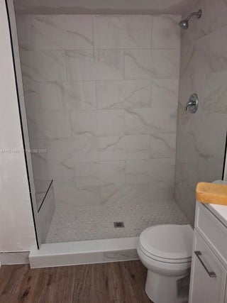 the GOOD of Bonaire at Woodmont in this 2-bed, 2-bath gem! Enjoy the lowest HOA fees in this gated community. Building features a concrete roof, healthy reserves, and has been recently painted. Inside, find a washer/dryer, wood-plank floor tiles, and updated fixtures throughout. The floor-to-ceiling sliding glass doors lead to a screened balcony with pool views. Guest bath has a modern design with a glass shower door, rainfall showerhead, navy blue vanity with gold fixtures, and large format gray tiles. The main bath offers a spacious modern vanity, modern fixtures, and a walk-in rainfall shower with a pebbled floor. **NOTE: NO RENTALS OR PETS ALLOWED. The association requires 12 months of maintenance to be held for 36 months. **40yr Inspection Completed** All Assessment Paid!