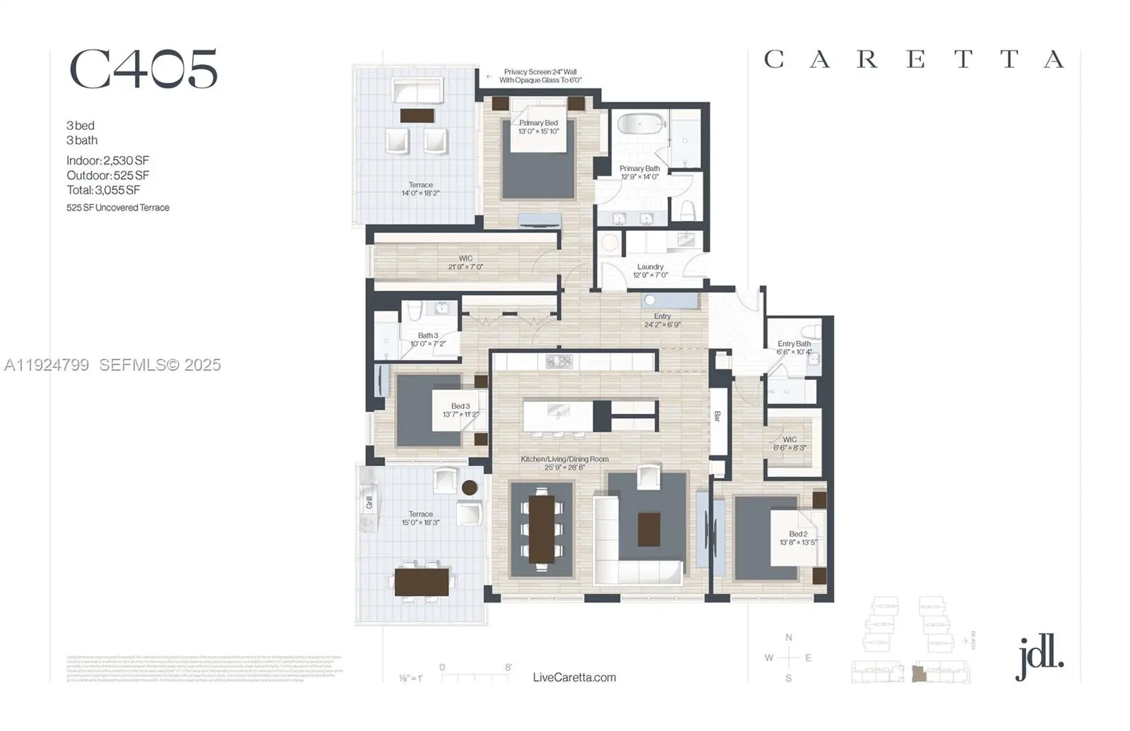 Delivering homes first quarter 2026! New construction just 400 yards to the beach. Juno Beach's newest seaside urban community, Caretta! Simplify your life with all the modern luxuries including a chef's kitchen with natural gas featuring wolf stove, sub-zero refrigeration, spacious island with waterfall countertops, wine storage, elegant features & 10' ceilings. Enjoy Florida living with an outdoor terrace & outdoor built-in gas grill. Caretta is Juno's newest luxury development with amenities including a neighborhood restaurant located within the community, rooftop pool, sauna, dog park, fitness center, golf simulator is just some of the amenities to help simplify your lifestyle. Since 1993, JDL Development has earned a reputation for developing luxury developments that exceed expectations, resulting in some of Chicago's most significant developments like One Chicago & No.9 Walton.