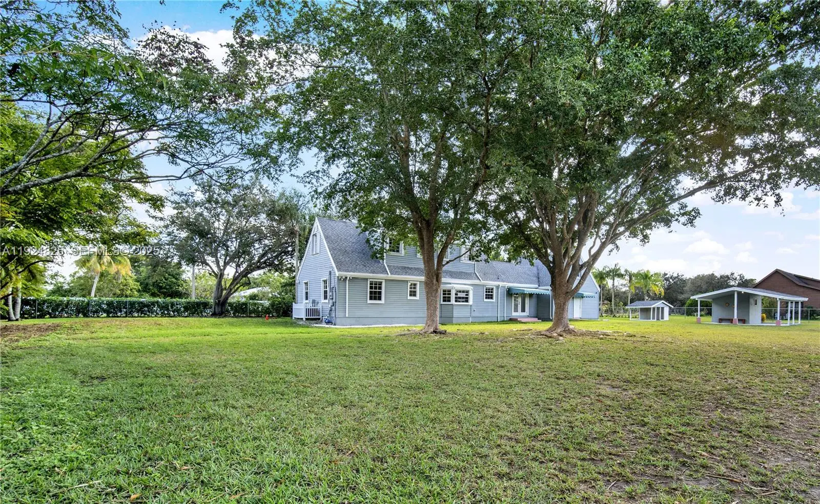 Beautiful 2 story charming Cape Cod architectural style home on almost an acre in the suburbs of Miami, and in the heart of historic Redlands. This lovely property offers a rural quality experience at its best, with mature trees, and tropical plants, that allows you to enjoy nature, with colorful vegetation all year round. This jewel is fully fenced, gated, with alarm. Situated on a generous corner property. It offers windstorm window protection, 2 car garage with hurricane impact doors, a new and oversized driveway that will fit 8 cars, an oversized attic that could also be used as an office or kids’ playroom, 2 A/C units, 2 exquisitely renovated bathrooms. 2BD downstairs with customs closets. The primary bedroom is upstairs, which offers a extra room, with custom closets, wood floors, and new wood stairs. The kitchen has been entirely remodeled with a beautiful white quartz countertop and backsplash, top of the line appliances, and porcelain floors. There is a formal living/dining room. Ample parking for several vehicles at front, back and sides of property, new water well with new irrigation system. Property offers ample space to build an in-law’s quarters, pool, or Tiki-hut, R/V and boat parking, etc. Near wineries, two blocks from a walking/biking trail, orchid farms, and private airport, short drive to Florida Keys and Kokomo. Security system and cameras throughout property.