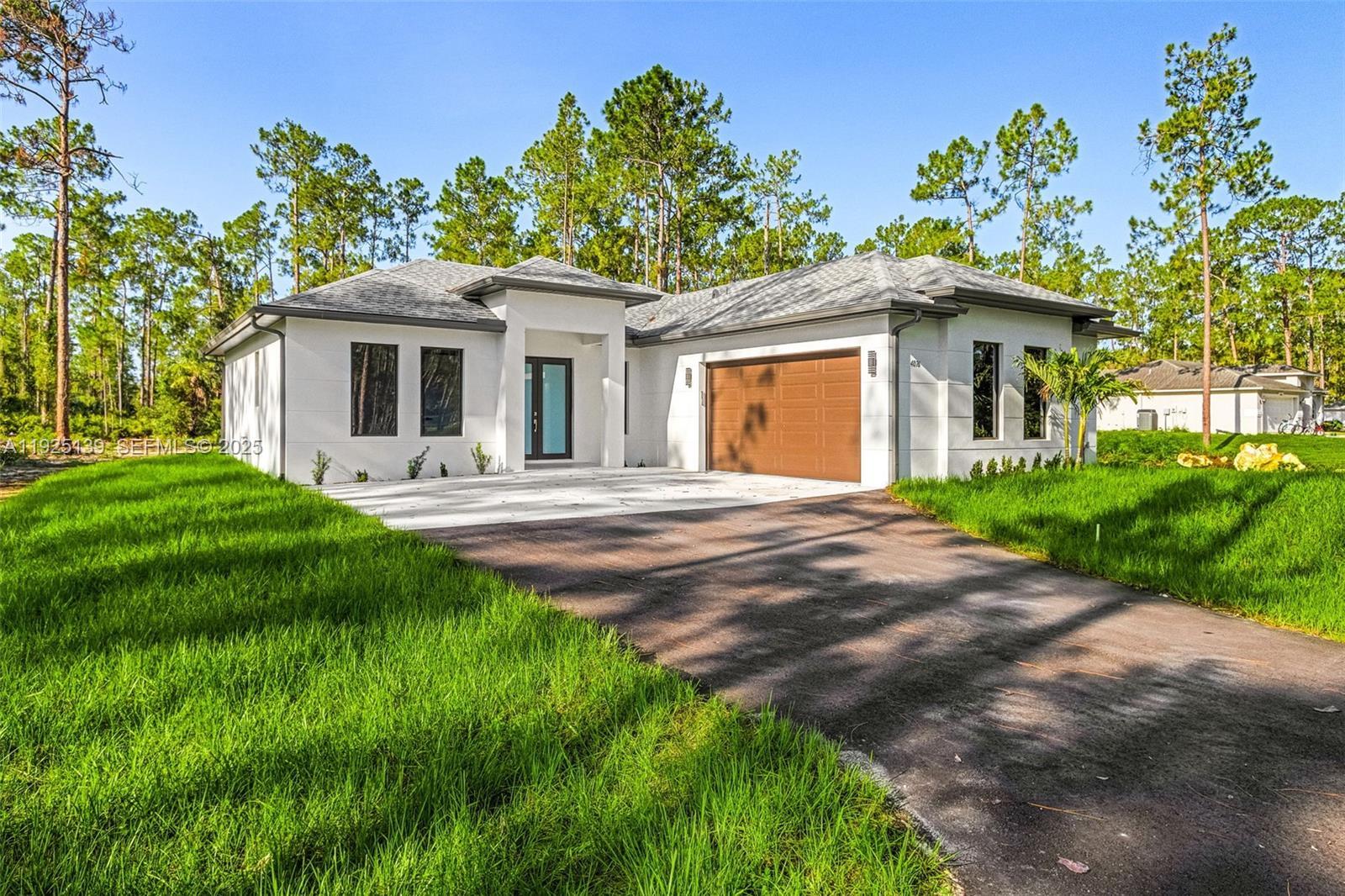 MOVE-IN READY. Beautiful, 3 bedroom PLUS den, NEW CONSTRUCTION. No restrictions or HOA fees. This inviting home showcases great attention to details and evident high quality built. Featuring 9'4" high ceilings with 10' tall tray ceilings; tile carried out throughout the house creating a clean, seamless, and spacious look; a fresh modern kitchen with all CUSTOM cabinets, quartz countertop, a waterfall island; crown molding on main living area and master bedroom; 6" baseboards throughout; 8-ft doors; and beautiful, modern bathrooms featuring vessel sinks and custom cabinetry. ALL IMPACT RESISTANT WINDOWS AND DOORS. Automated sprinkler system and asphalted driveway. PARTIALLY FENCED. MLS pictures are a representation of house of same model, not actual property.