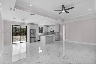Looking for Privacy and a TONS of Space? This is the one for you. 2.27 acres of flat and mostly cleared land. ALL UPLANDS. Ready for any projects or additions! This stunning, 3 bedroom plus den, new construction is situated in the beautiful Golden Gate Estates, in Naples FL. The great attention to details and high quality built is evident throughout the house; featuring tall french doors, a lovely and airy living room with tile throughout the house, a modern light gray Custom Wood Cabinetry kitchen with quartz countertop, a waterfall island, tasteful backsplash, soaring high tray ceilings, beautiful crown molding on main living area and master bedroom, 6" baseboards throughout, 8-ft doors, and a beautiful touch of modern with waterfall faucets in the bathrooms. This property also features asphalted driveway, automated sprinklers and ALL IMPACT RESISTANT WINDOWS AND DOORS. MLS pictures are a representation of house of same model with similar finishes, not actual property. There will be some variations.