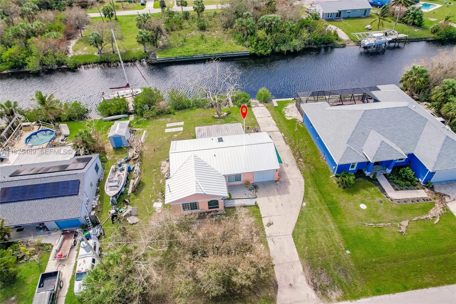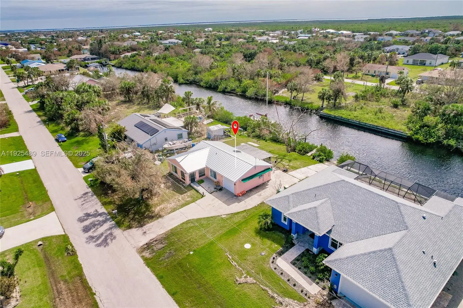 WATERFRONT PARADISE! Enjoy 80 ft of sailboat-access canal frontage with your own private boat ramp—fish from your backyard and cruise straight to Charlotte Harbor with no bridges! This spacious and comfortable 3-bed, 2-bath home features a new aluminum roof, a 1-car garage, and NO HOA, giving you the freedom to park your RV, boat, or recreational toys right on your property. Relax on the large screened lanai overlooking the tranquil canal—the perfect place to unwind with sunsets and coastal breezes. Located in a highly desirable waterfront community, just minutes by boat to restaurants on the water, local sandbars, Charlotte Harbor, and the stunning Gulf beaches. Move-in ready and ideal for boating enthusiasts or anyone seeking the perfect waterfront retreat!