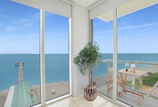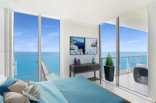 Breathtaking 02 Line at La Perla! This oceanfront corner residence features 2 luxurious primary suites, 2.5 baths + den, and the building’s highest 10' ceilings, floor-to-ceiling impact windows showcasing endless SE ocean views. Each bedroom offers its own terrace with stunning South East Views—even from the baths. Enjoy marble floors, custom walk-in closets, electric shades, and an open, fully equipped modern kitchen. Ideal Sunny Isles location on the pier, walk to shops, minutes to Bal Harbour & Aventura mall. Perfect as a second home or top-tier investment allowing 12 rentals per year.Includes 1 self-parking + 2 valet. HOA fee includes beach service, gym, kids playroom, cable, high-speed internet, 24 hour front desk, 25% discount at the pier restaurant.