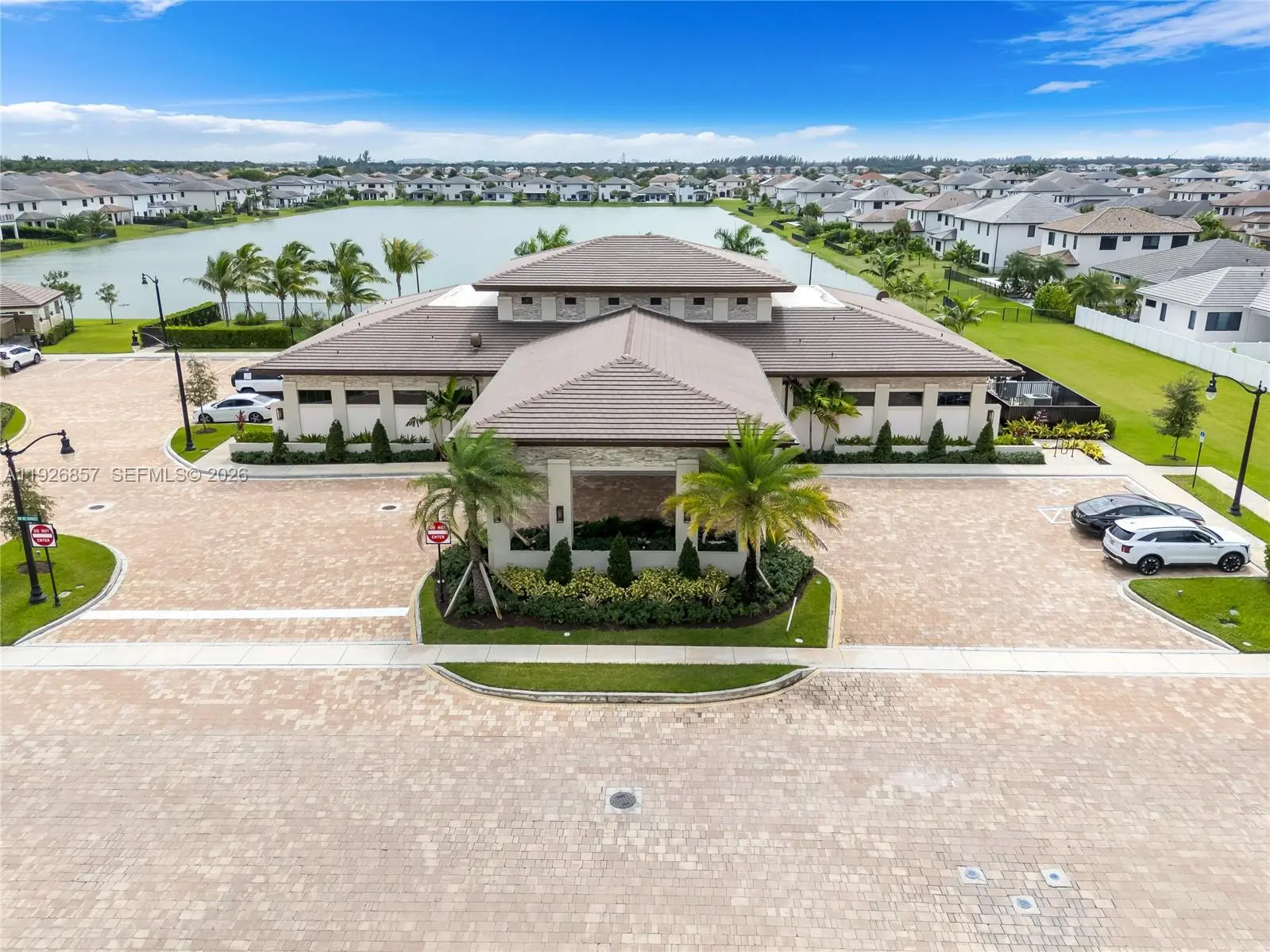 Gorgeous, modern smart home with stunning lake views in the gated community of Marbella. Features 10’ ceilings, open layout, tile on the 1st floor, and a sleek kitchen with island, quartz counters and SS appliances. Upstairs offers elegant vinyl floors, huge master suite with two custom walk-in closets, tub and shower, plus three bedrooms with walk-ins. Enjoy a covered terrace, paved patio, green yard. Includes a private guest suite with kitchenette and laundry. Two-car garage with large driveway. Community clubhouse with gym and pool. Near A-rated schools, Memorial Hospital Miramar, I-75.