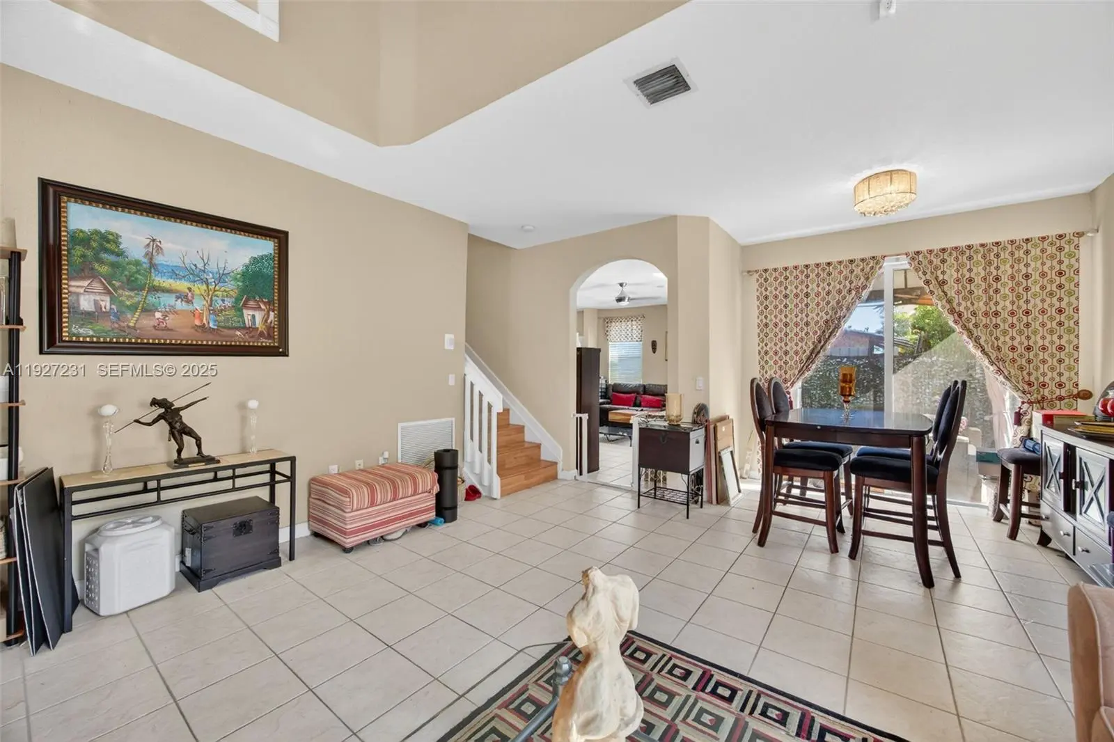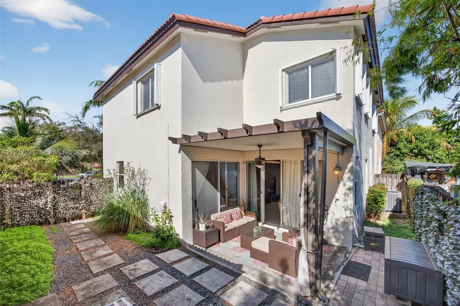 Light-filled 2-story home in desirable Lakes by the Bay. Features soaring ceilings, open living areas, tile downstairs, laminate upstairs, and a stainless steel kitchen overlooking the family room. Spacious primary suite with walk-in closet and spa-style bath. Enjoy a pergola-covered patio with ceiling fan, AIR-CONDITIONED 2-CAR GARAGE, HURRICANE SHUTTERS, NEW WATER HEATER AND 2-YEAR-OLD AC. HOA includes front lawn care, community pool, and clubhouse. Move-in ready living in Cutler Bay.