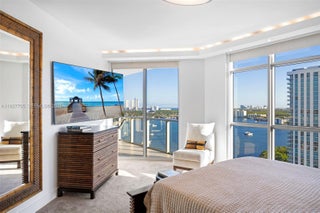 Set above the marina with wide, unobstructed Intracoastal and ocean views, this 1,670 SF residence offers a calm, refined take on waterfront living in Aventura. Originally delivered as a developer model unit, Residence 1803 features upgraded finishes and a thoughtful coastal design framed by floor-to-ceiling windows and a private terrace overlooking the water. The split-bedroom layout enhances privacy while inviting natural light throughout the home. Interior details include electric blinds, blackout shades, drop-down ceilings with recessed lighting, custom millwork, custom doors and door frames, and a contemporary open kitchen appointed with integrated appliances and stone countertops. The primary suite serves as a peaceful retreat with a custom walk-in closet and a spa-inspired bath finished in glass and stone—all oriented toward wide water views. Practical benefits add meaningful value: two deeded parking spaces, with the option to sell one separately (valued around $60,000), and no current assessments. Residents enjoy access to a full-service marina and yacht club, resort-style amenities including a waterfront pool deck, fitness center, spa, children’s playroom, concierge, valet, and 24-hour security. Ideally located within the Aventura marina district, close to beaches, dining, SoLé Mia Hospital, and shopping—with Houston’s next door—Residence 1803 blends modern coastal design with the comfort and convenience of luxury waterfront living.