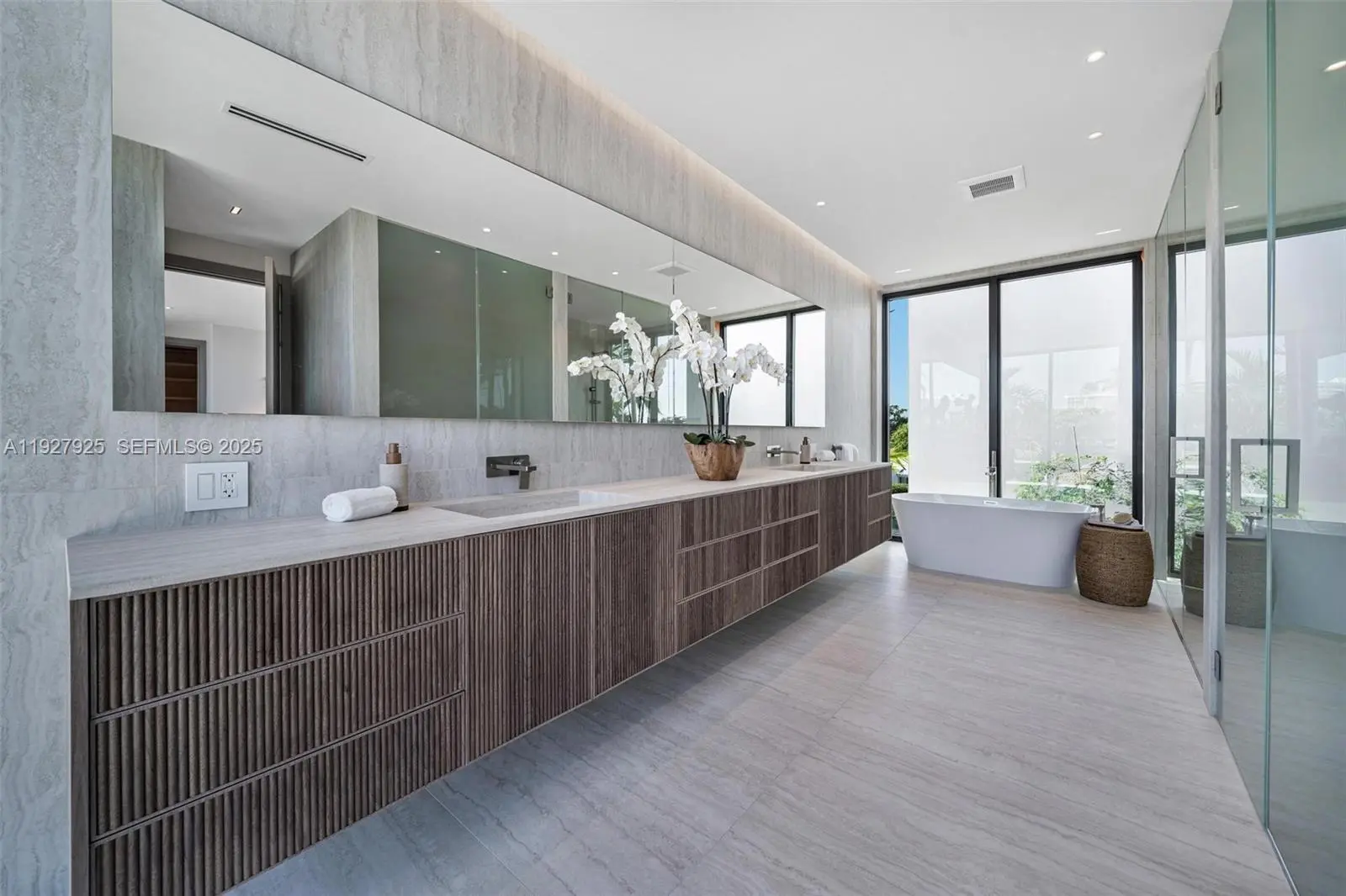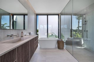 A coastal modern gem only moments from the beach. Six bedrooms and 6.5 bathrooms centered around a sun filled courtyard that brightens the entire home. Enjoy Wolf and Sub Zero appliances in the gourmet kitchen and speakers throughout for seamless living. The east facing backyard captures the ocean breeze and features a spectacular summer kitchen for effortless entertaining.