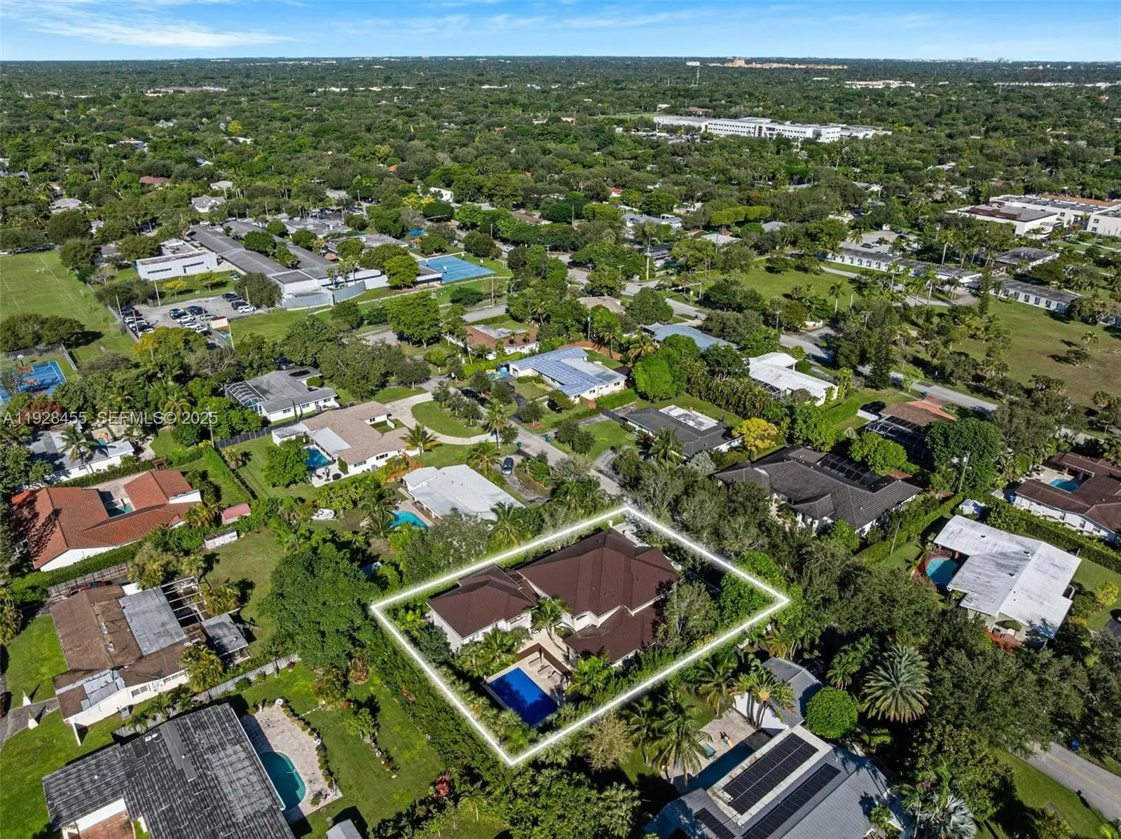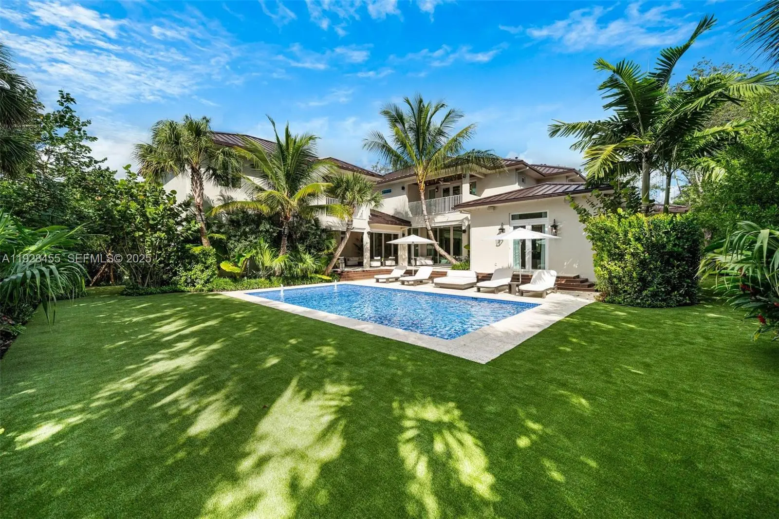 This brand-new Modern Key West–style estate blends coastal elegance with contemporary luxury in the heart of Pinecrest. Privately gated and surrounded by lush tropical landscaping, this custom-built residence offers nearly 9,000 SF total construction and 6,585 SF under a/c. With exceptional craftsmanship, thoughtful design, and cutting-edge technology throughout. The home features 5 bedrooms including a fully autonomous 1-bedroom guest apartment with full kitchen and private entrance. Additional highlights include 6.5 bathrooms, a dedicated office, custom gym, and a residential elevator. A grand double-height foyer opens to bright, airy living spaces with designer lighting, custom built-ins, and top-of-the-line fixtures and appliances. All bedrooms feature private balconies, while the main master suite offers direct pool access and a boutique-style dressing room. The living room includes a sleek gas fireplace ignited with the press of a button. The resort-style backyard is perfect for entertaining, complete with a sparkling pool, summer kitchen, and covered terraces surrounded by lush greenery. Fully integrated with state-of-the-art smart-home automation, impact windows and doors, and a 2-car garage, this estate embodies modern design, coastal sophistication, and elevated living in one of Pinecrest’s most sought-after neighborhoods.