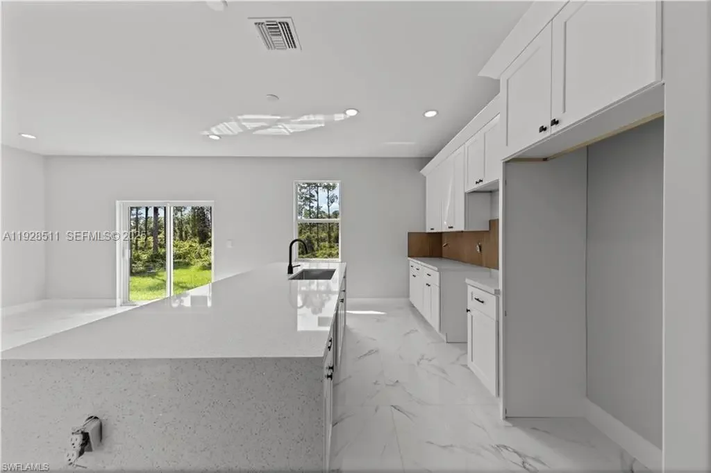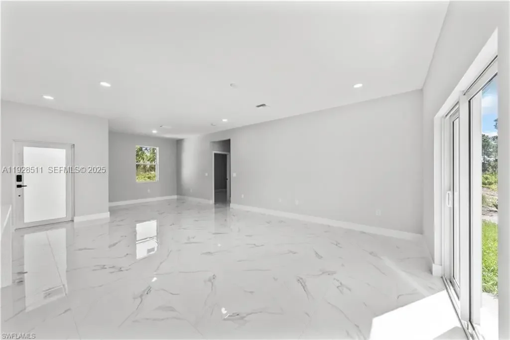 Experience the best of new construction in a flourishing area of Lehigh Acres! This stunning 3-bedroom, 2-bathroom home features a bright and airy open-concept kitchen, perfect for entertaining. The kitchen boasts elegant wood cabinets, pristine quartz countertops, and a full suite of brand-new stainless steel appliances. Enjoy the Florida sunshine and ultimate peace of mind with impact windows and doors throughout. With gorgeous porcelain tile underfoot and zero updates needed, this move-in-ready home offers the perfect blend of modern style and effortless living. Schedule your private showing today!