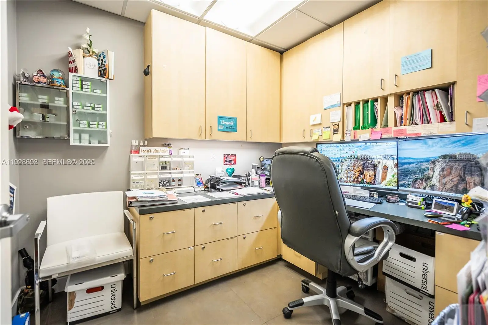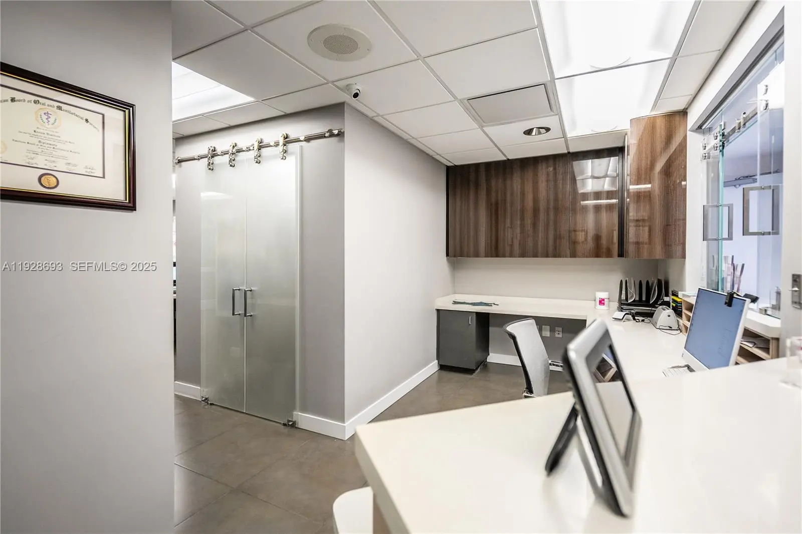 Fully equipped, state-of-the-art oral and maxillofacial surgery center totaling 3,814 sq ft, purpose-built with a true medical-grade layout that exceeds the standards of most dental and medical facilities. The space includes five operatory rooms designed specifically for surgical and clinical procedures, a centralized sterilization area optimized for infection-control workflow, three private consultation rooms, four administration offices, and a in-office patient bathroom. What truly distinguishes this office is its thoughtfully designed patient experience, featuring a private family waiting room separate from the main lobby—an uncommon amenity that supports privacy and comfort during surgical visits. The main reception and lobby area are laid out to support efficient, high-volume patient flow while maintaining a calming, professional atmosphere. Additional high-value features include a server/IT room , an independent AC unit that supplements the building’s central HVAC system for enhanced climate control in the surgical and recovery areas, and a dedicated hallway storage room that currently houses a medical-grade suction and vacuum system. The office is also designed with three separate entrance and exit doors, allowing flexible access, increased privacy, and optimized patient circulation. The practice also comes with three reserved under-port parking spaces, providing convenient and protected access for patients and staff.
