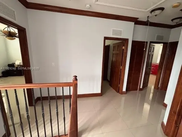welcome to a spacious and beautiful house ,two story with two masters room one down stair with private entrance ,and another up stair , with balcony and private view ,it is separate family room,dining, living area, tiled floor all house,5 bedroom, 3.5 bathroom ,double car garage ,the a/c new,,the roof was inspected ,this beautiful property is very spacious house for a family , ,pool is in excellent condition, it is almost 2600 sql . impact window