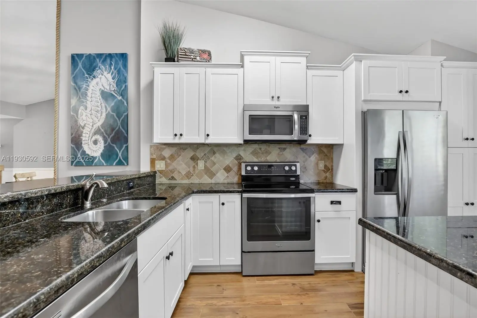 Seller CONCESSION FOR CLOSING COSTS OR RATE BUY DOWN! Wake up to peaceful lake views in this beautifully designed 3-bedroom, 2-bath coach home with 1,760 square feet of open living space. Vaulted ceilings and engineered hardwood floors create an airy, inviting atmosphere throughout. The kitchen is equipped with granite countertops, white cabinets, center island, snack bar, and stainless steel appliances, opening to spacious living and dining areas. The primary suite is a true retreat with dual walk-in closets and a well-appointed bath featuring dual sinks and a walk-in shower. Big secondary bedrooms and updated 2nd bathroom. Oversized screened-in patio offers breathtaking lake views and extends the living space outdoors. Accordion shutters, one-car garage, and HOA includes cable TV and internet. Diecke Park features pickleball and tennis courts, walking paths, and playground located next door.