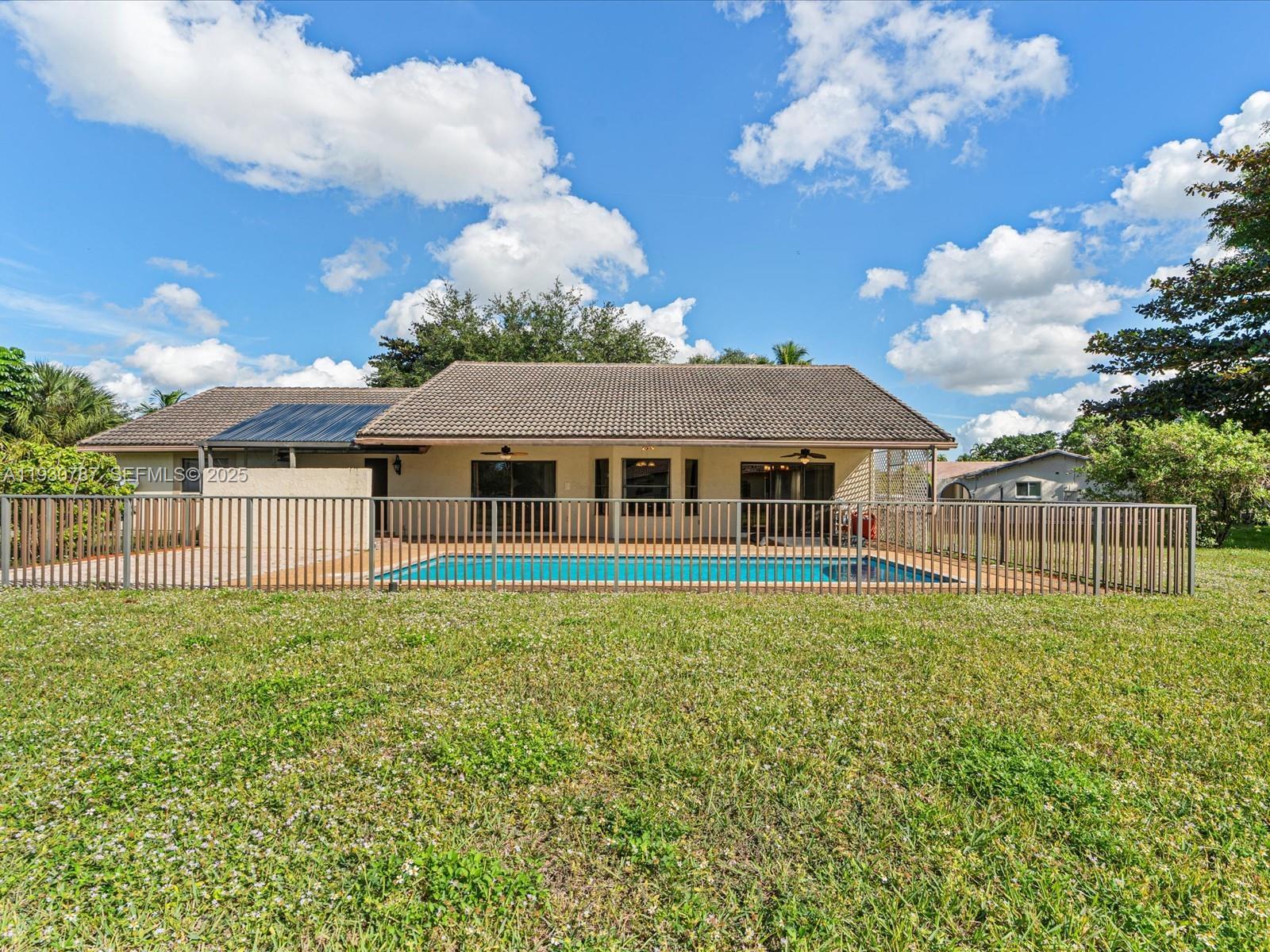 Welcome to the highly desirable Coral Springs Country Club! Tucked away in a secluded cul-de-sac on an impressive .41-acre lot, this home offers the ultimate freedom with NO HOA. The expansive grounds give you the flexibility to tailor the space exactly to your vision. Arrive via an expansive paver driveway that provides ample guest parking in addition to the spacious 2-car garage. Step inside to discover a bright and airy interior featuring beautiful tile floor, soaring vaulted ceilings and natural light streaming through the skylights. Enjoy peace of mind with major recent updates, including a 2023 electrical panel and a 2022 water heater. The primary suite is a true retreat, boasting a newly remodeled shower and a luxurious Roman tub—perfect for relaxing and melting your stress away. The outdoor living space is a true showstopper. Dive into the sparkling pool, which was recently upgraded with a Diamond Brite resurface. Just steps away, unwind in the hot tub, featuring evening ambiance lighting—perfect for relaxing rain or shine.