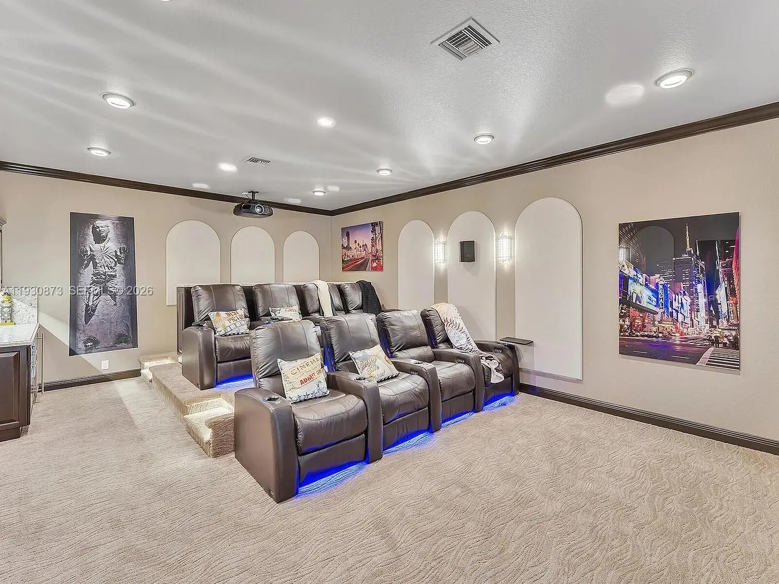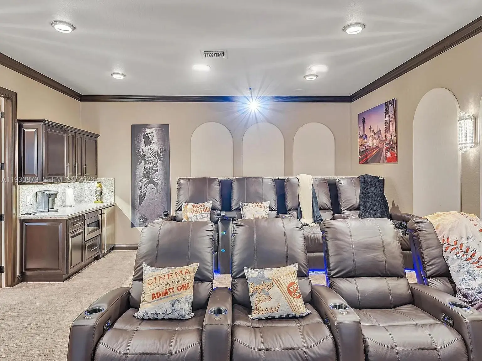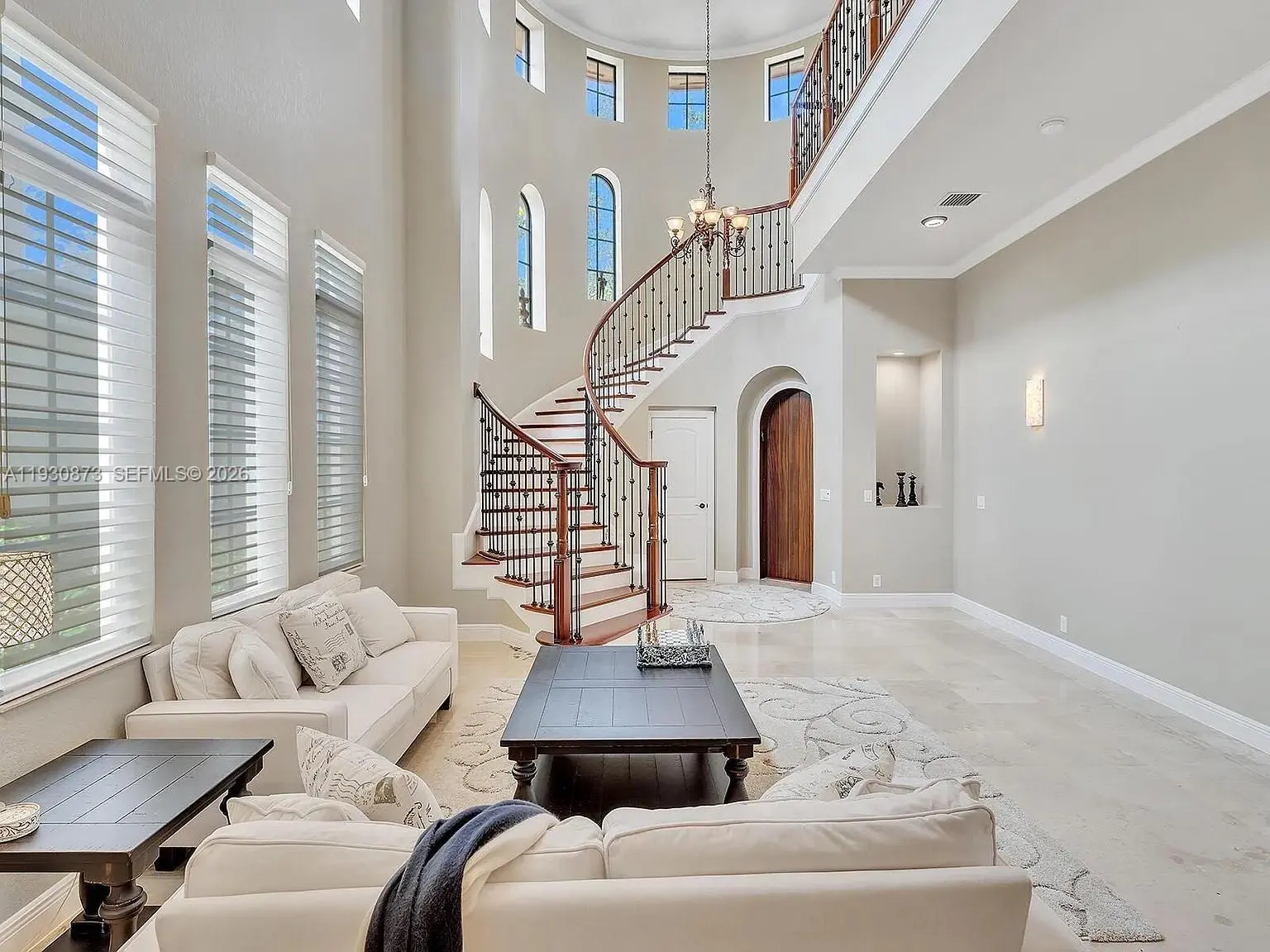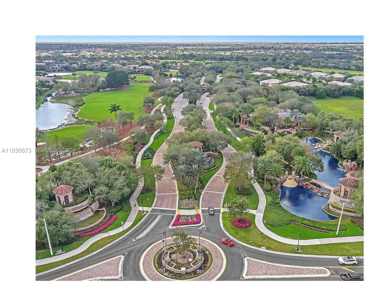 Exceptional turnkey residence in the prestigious Parkland Golf & Country Club. This elegant 5-bedroom, 3.5-bath home features soaring volume ceilings, crown molding, and marble flooring throughout. The gourmet kitchen offers soft-close cabinetry, granite countertops, stainless steel appliances, gas cooking, wine refrigerator, and reverse osmosis system. The first-floor primary suite includes a private sitting area, dual oversized walk-in closets, and a spa-inspired bath with jacuzzi tub and separate shower. Upstairs offers three additional bedrooms, two baths, and Brazilian cherry hardwood flooring throughout. Enjoy a state-of-the-art private theater with a 133” screen, eight reclining seats, and Dolby Atmos surround sound. Impact windows and doors throughout, newer A/C systems (2019 & 2020) with room for a private pool. Residents enjoy world-class clubhouse amenities including fine dining, resort-style pools, tennis, fitness center, and more. A rare opportunity in one of Parkland’s most sought-after communities.
