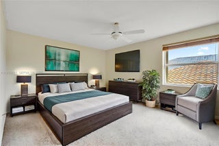 Updated price! Enjoy your morning coffee with direct lake views from your private balcony in this stunning lakefront home! Offering approximately 3,400 square feet, this 4 bed, 3 bath residence features a bright open floorplan with cathedral ceilings and expansive water views across the entire rear of the home. The kitchen offers real wood cabinetry, granite countertops, stainless appl, & ample storage. On the first floor, half of the two car garage has been converted into an air conditioned sitting area that can be used as flexible living space or a potential bedroom, with a convenient half bath. Upstairs includes a spacious loft, four generously sized bedrooms, and a primary suite with his and her walk in closets and two full baths. The serene backyard is surrounded by beautiful nature and mature fruit trees, creating a peaceful lakeside retreat with breathtaking sunset views. Hurricane accordion shutters are installed on all windows and glass doors. The home also includes a separate single car garage, with the option to convert the partially finished space back to a full two car garage if desired. Located within the Towngate Master Association, residents enjoy resort style amenities including pools, basketball and tennis courts, playgrounds, and a clubhouse, with cable and internet included. No HOA approval required. Please ask us about the 3-2-1 approved lender buydown. Interest rate as low as 3% with a monthly payment probably lower that what you're paying in rent!!