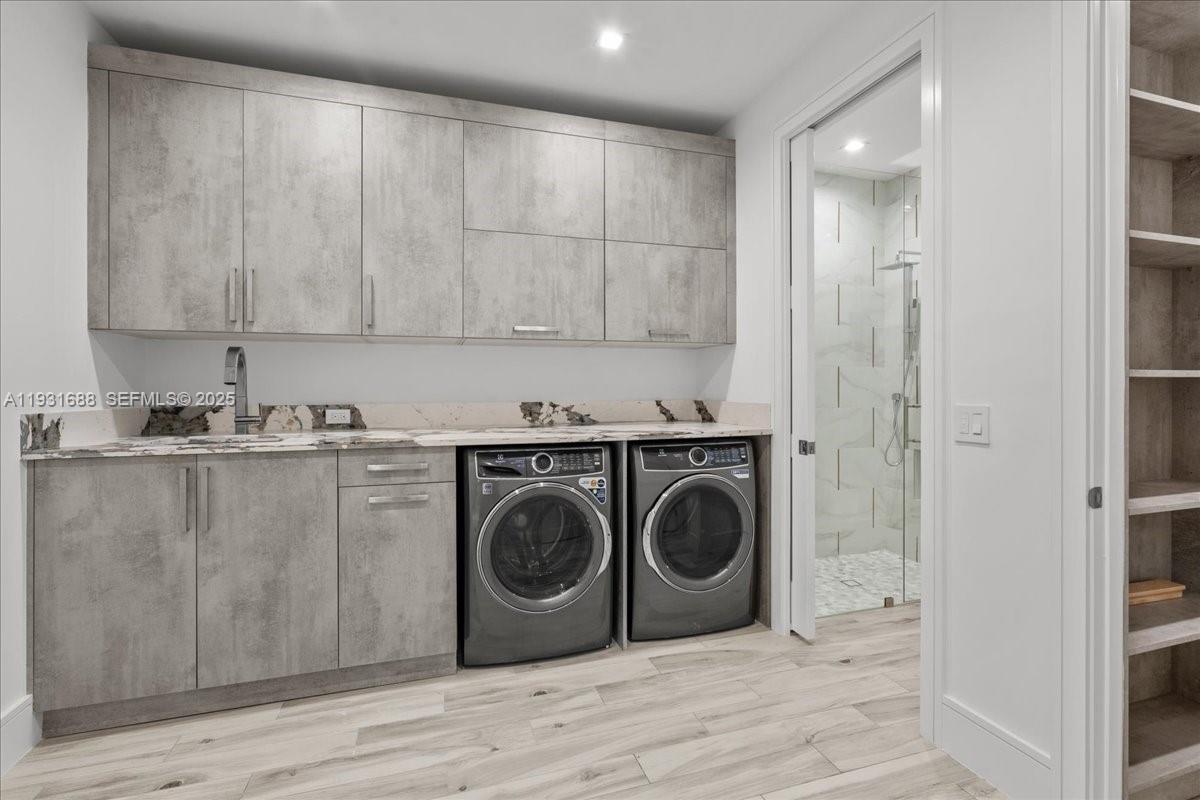 Expansive modern residence offering 4 bedrooms and 6 bathrooms with thoughtfully designed living and entertaining spaces throughout. Features include two laundry rooms, a 3-car air-conditioned garage, second-floor wet bar, and multiple indoor-outdoor living areas. The chef’s kitchen is equipped with top-tier appliances, custom cabinetry, and generous workspace, opening seamlessly to the main living areas with soaring ceilings and refined finishes. A private elevator services all levels, including a fully built-out rooftop retreat featuring an outdoor summer kitchen, cabana bath, and water views—ideal for elevated entertaining. Outdoor amenities include a resort-style pool and spa, covered entertaining areas, and lush landscaping. Built with concrete block construction, impact-resistant windows and doors, and premium materials throughout. Ideally located minutes from the Gulf beaches, Venetian Village, and Fifth Avenue South, this move-in-ready home offers luxury living in one of Naples’ most sought-after neighborhoods.