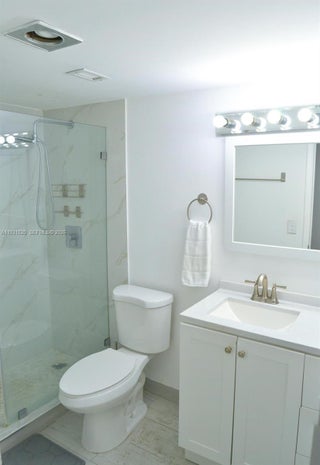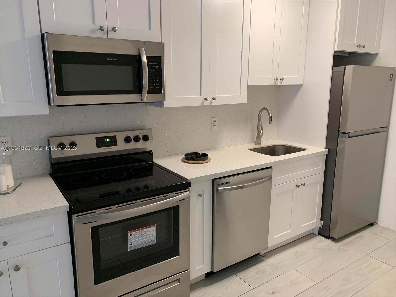 Welcome to Three Horizons North Condominium. This renovated condo features sleek gray ceramic tile flooring, a modern kitchen with quartz countertops and brand new stainless steel appliances including new dishwasher, refrigerator, microwave and electric range. Enjoy the freshly remodeled and comfortable bathroom for long soothing showers. 2 spacious walk-in closets add comfort and functionality. Step out onto your private balcony to enjoy fresh air and views of the miami skyline. Located in a gated building offering a pool, laundry facilities, and assigned parking. Ideally situated just minutes from the beach, Bal Harbour Shops, I-95, FIU, Barry University, Costco, and more. Schedule your showing today. Water & Sewer included.