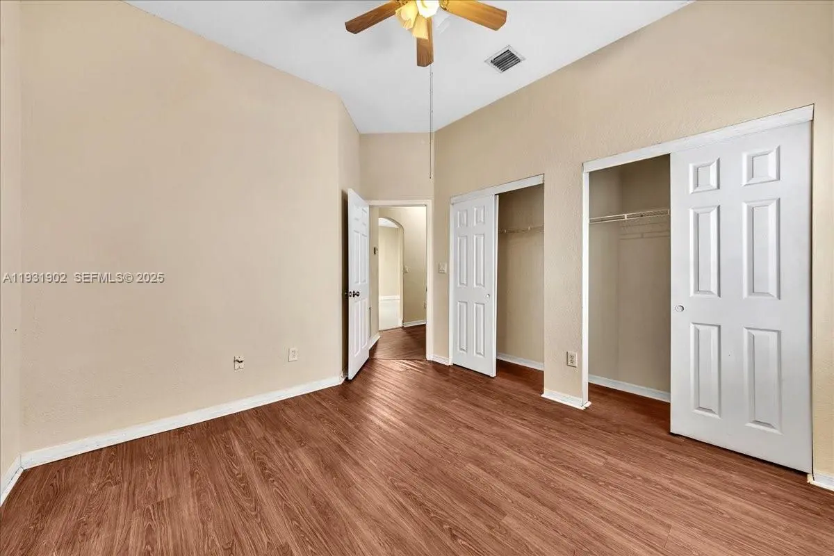 This beautifully maintained 4-bedroom, 2-bath residence offers a serene retreat tucked away on a quiet cul-de-sac, perfect for tenants seeking both comfort and privacy. Step inside to find a bright and inviting interior featuring neutral-toned walls and ceilings that complement any décor. The spacious kitchen is ideal for everyday living and entertaining, complete with granite countertops, stainless steel appliances, and ample cabinet space. A desirable split-bedroom floor plan provides added privacy for the primary suite, while tile and wood flooring throughout the home adds warmth and durability. Natural light fills the home through numerous windows, creating an open and airy atmosphere. Enjoy generous storage with a large walk-in closet, and unwind outdoors in your private pool or relax on the screened balcony, perfect for enjoying Florida living year-round. The home is also equipped with hurricane shutters, offering added peace of mind. Located in a well-maintained community, residents have access to resort-style amenities including a community pool, fitness center, spa, newly remodeled clubhouse, elegant gated entrance, tennis and pickleball courts, basketball and racquetball courts, a kiddie playground, and a beach volleyball court. Conveniently located near shopping, dining, and major roadways, this home delivers the ideal combination of lifestyle, comfort, and convenience, perfect for renters looking to enjoy the best of South Florida living.