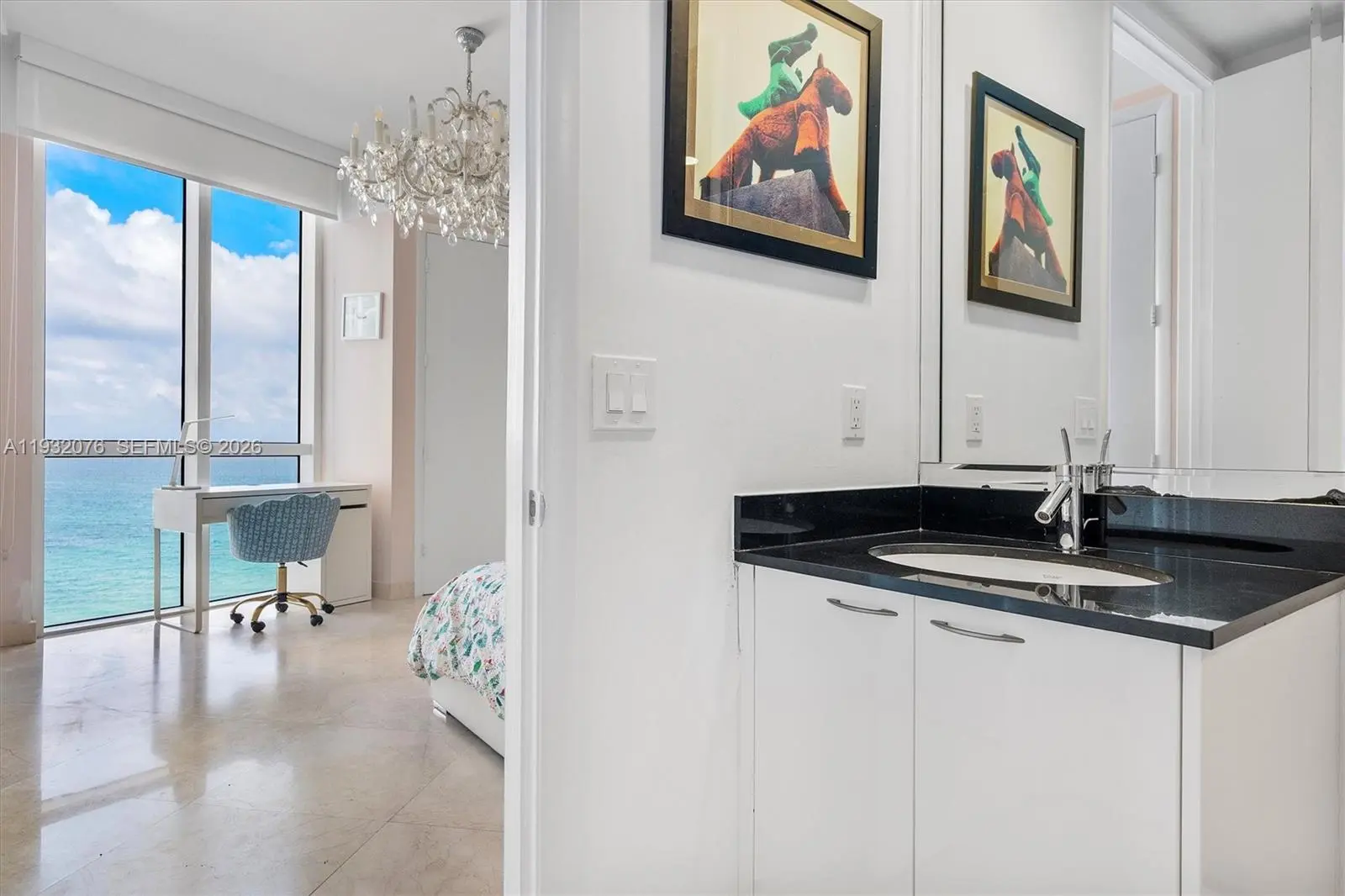 Oceanfront 3 bed / 3.5 bath direct ocean and Intracoastal residence with an east-to-west flow-through layout and 4 balconies to enjoy both sunrise and sunset. Professionally decorated, marble floors, split bedrooms, and an Italian kitchen with top-of-the-line appliances, wine cooler. Building offers resort-style amenities: state-of-the-art gym/spa, pool service, restaurant, business center, and concierge. Minutes to Bal Harbour Shops, Aventura Mall, and top dining. Vacant - easy to show!