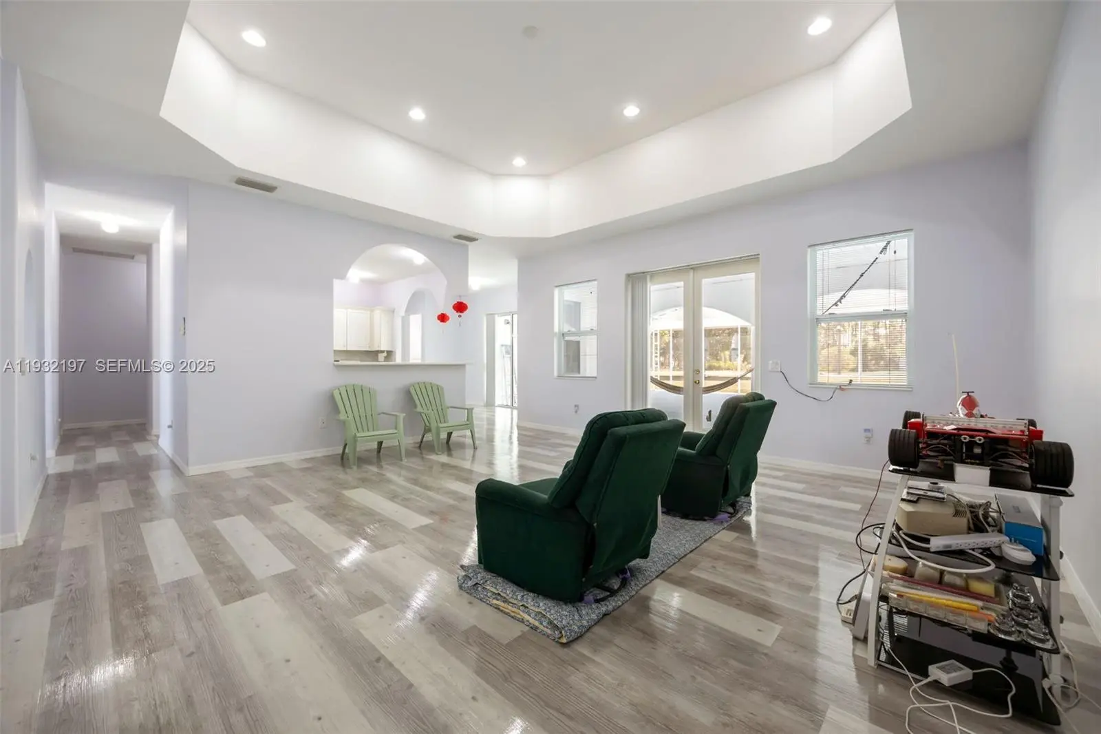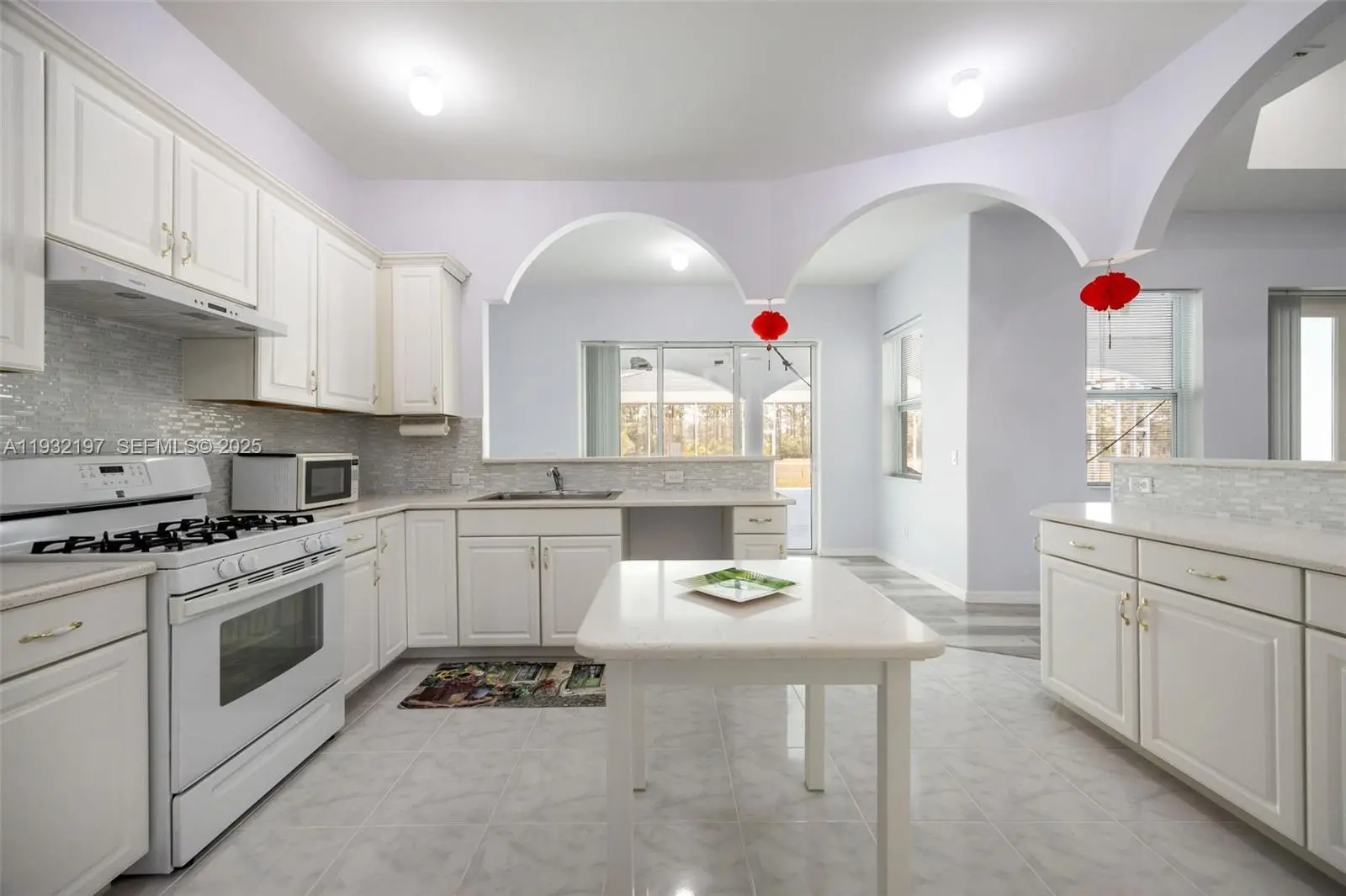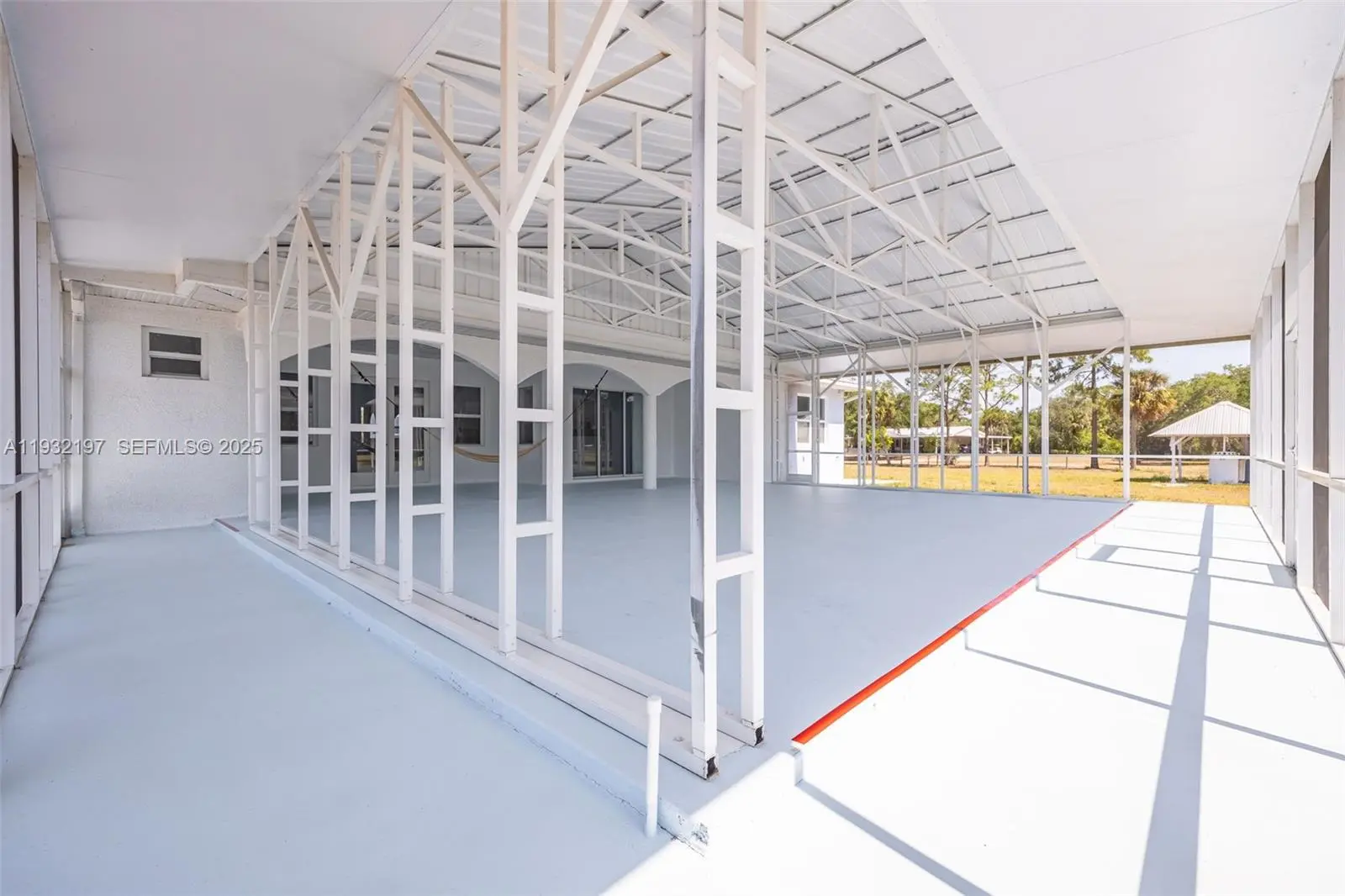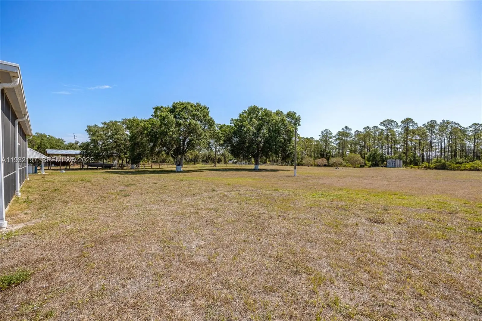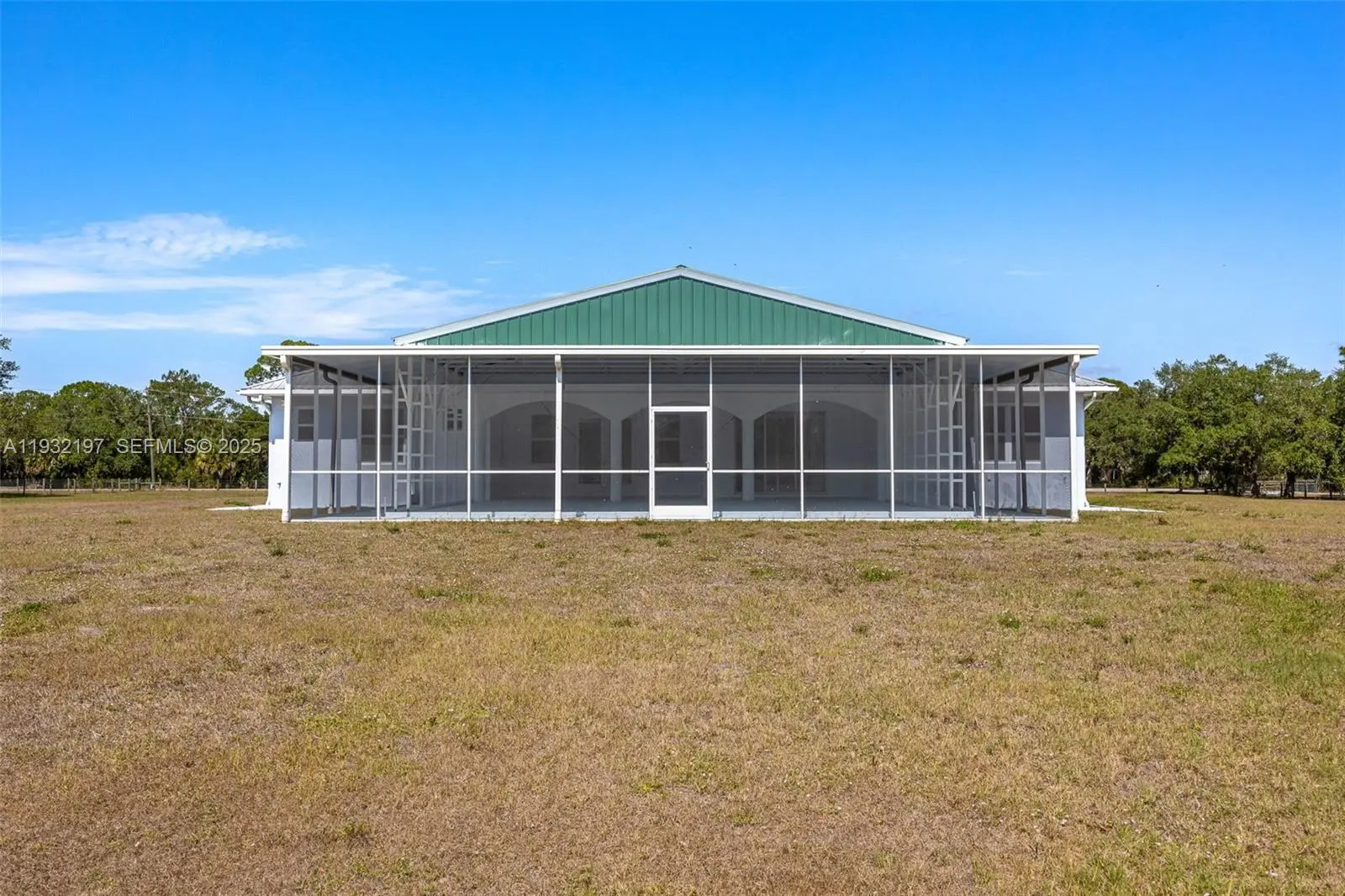 Outstanding in its Field! You will find this Custom Built 4 bedroom, 3 bath home placed in the middle of 4.85 acres of QUIET! Located down a peaceful, dead end road you will find this well built home with a metal roof and completely fenced offering years of carefree living. Inside you will find and easy to love floorplan and very spacious rooms. A well designed kitchen is the heart of the home offering an abundance of quartz countertops, a small island worktable, a gas stove (there is an electric plug installed behind the stove if you want to change to electric) and breakfast bar. High 10, 12 and 13 foot ceilings and 8' doors throughout with abundant windows lend to plenty of natural lighting. Step outside onto the under truss back lanai and into a massive,14 gauge steel sturdy screened porch where possibilities are endless, party area, roller skating, this porch is amazing and is sure to please all. There is an abundance of outdoor electrical plugs, Nothing was overlooked with this solidly built home. A 45 ' container exist on the property and will convey. (One guest bathroom is completed, The master bathroom has room and plumbing for a tub and still needs vanities. The bathroom for the 2 bedrooms on the opposite side of the home still needs the vanities.) Seller is selling the home "AS Is". Finish the bathrooms to your own style and enjoy a Tranquil Country Lifestyle.